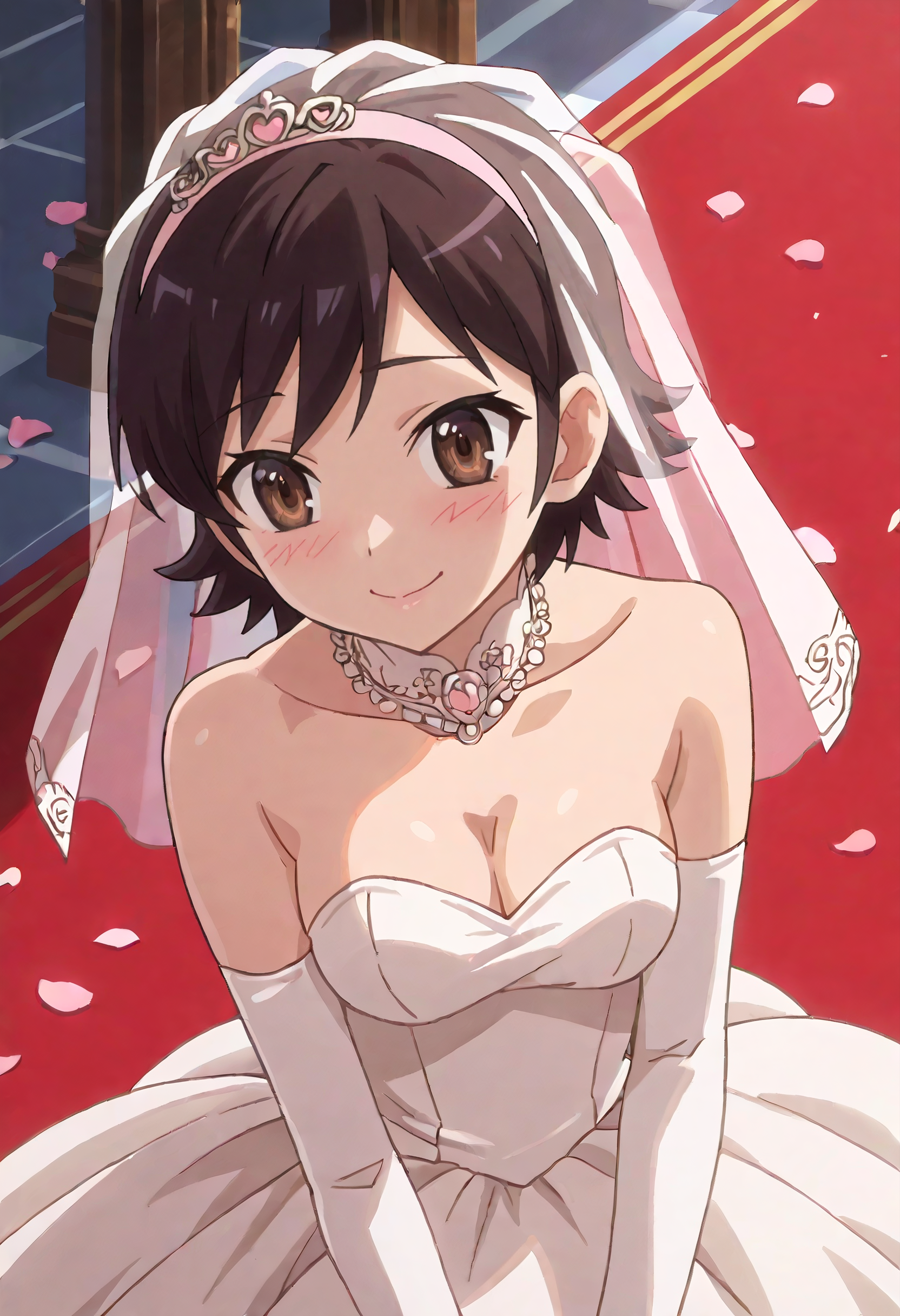AyumiDress, 드레스, 웨딩 드레스, 어깨 노출, 흰색 드레스, 스트랩리스, 신부, 스트랩리스 드레스, 가슴 노출, 장갑, 헤어밴드, 팔꿈치 장갑, 브라이덜 베일, 흰색 장갑, 베일, 등 노출 옷, 등 노출 드레스,