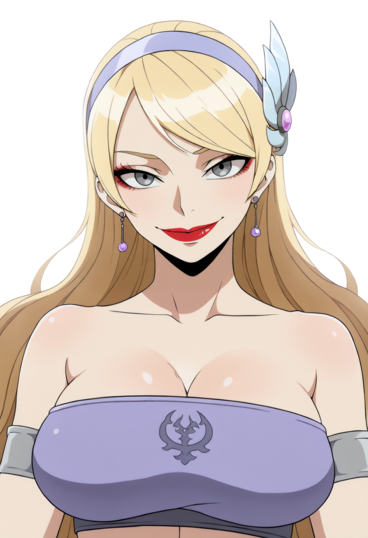 Basic prompts : 1girl, coordinator, long hair, blonde hair, hairband, grey eyes, red lips, hair ornament
