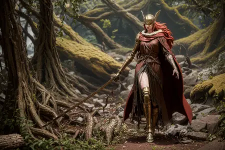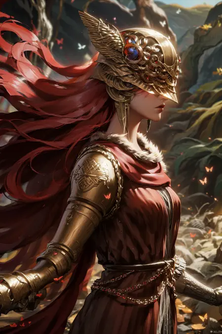 为了能够区分左右手,我增加了单独的右手触发词,并为了实现可调节性,分离了多个触发词,这样可以实现完全露脸效果。请大家务必仔细阅读以下关键词:主触发词为 eldenring(malenia),可能触发 eldenring(type2),其他触发词包括 cursed_left_arm、winged helmet、red cape、malenia_blade、covered eyes。其中 cursed_left_arm 可触发左右手的腐蚀效果,帮助 Stable Diffusion 区分左右手;移除 winged helmet 和 covered eyes,并将其加入反向提示词,同时添加 beautiful face 的特征描述,即可脱下面具,看到我为大家精心准备的惊喜,希望你们会喜欢。