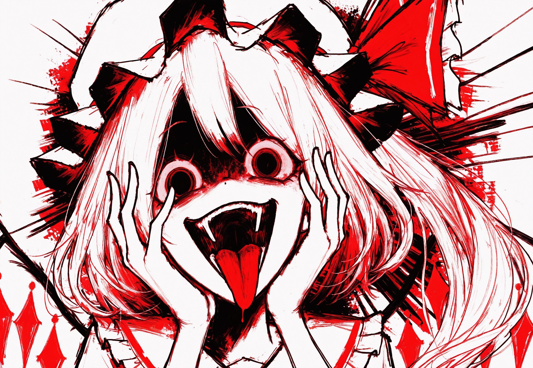 expressionist, abstract, horror, monochrome, ink wash, smudged paint