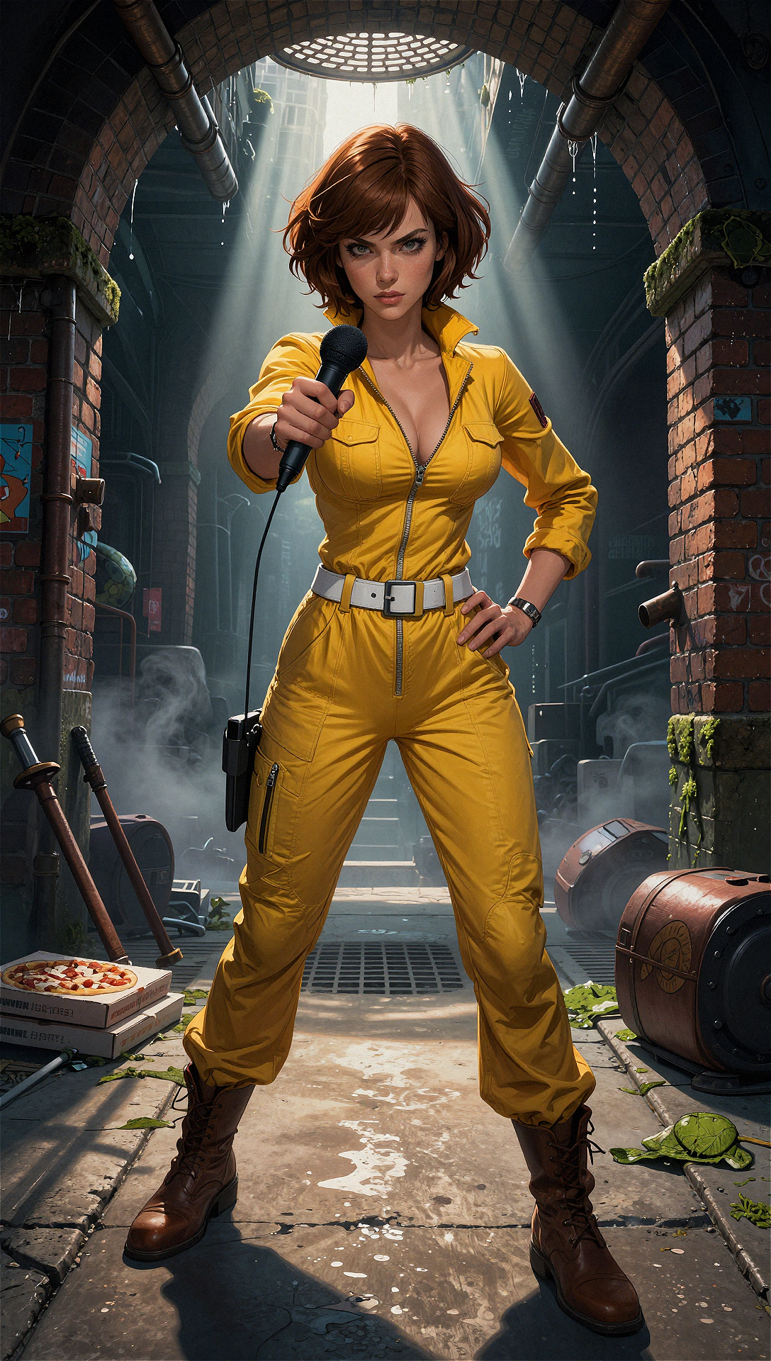 The character's most iconic portrayal emerged in the 1987 animated series, where April was reimagined as a fearless television reporter for Channel 6 News, distinguished by her signature yellow jumpsuit and bold investigative style. This version emphasized her resourcefulness and determination, often placing her in perilous situations that drew the Turtles into action against recurring foes like Shredder and Krang. As a strong-willed professional balancing career demands with loyalty to her mutant friends, April became a role model for independence and courage, contributing significantly to the series' widespread popularity and defining her visual and personality traits for subsequent adaptations.