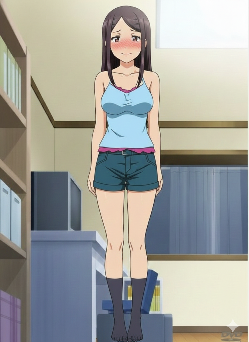 Attire: In this episode, she is often shown in a home environment, wearing casual clothing or school uniform, which enhances the contrast between her everyday life and the provocative situations she finds herself in.