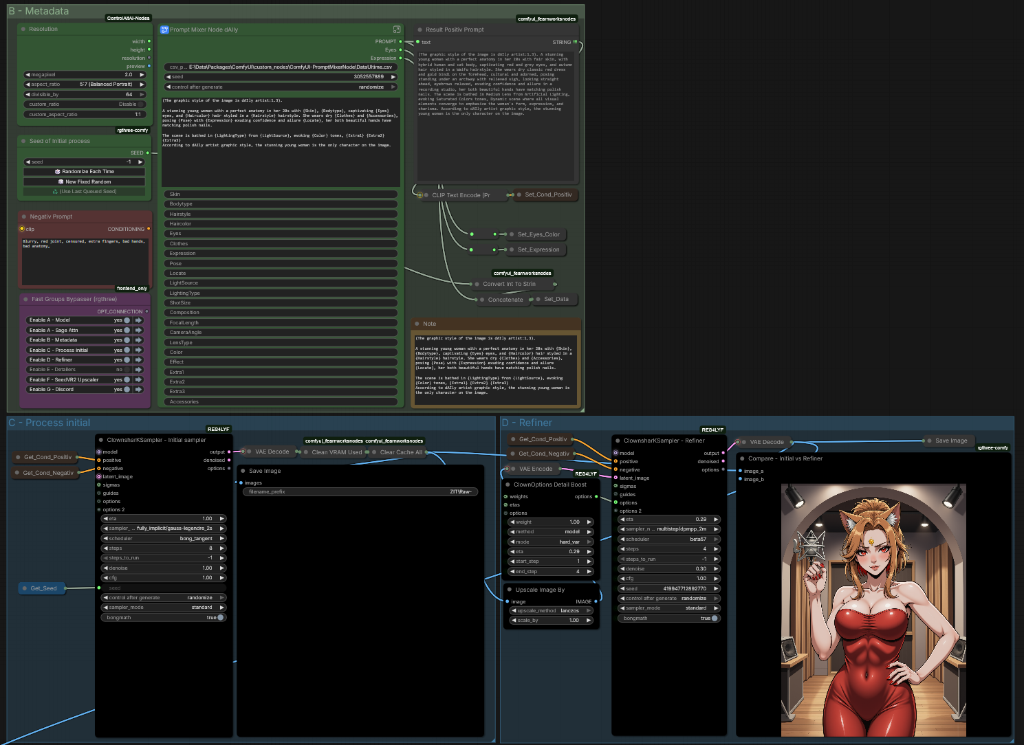 Workflow with my custom node (a node for wildcard with a csv)