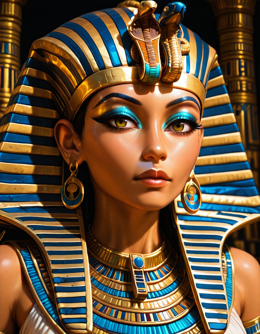 • 창의적 활용: nemes_headdress style cloak, (blue and golden striped cloak)와 같은 프롬프트를 사용해 패턴을 다른 아이템에 적용할 수 있습니다.