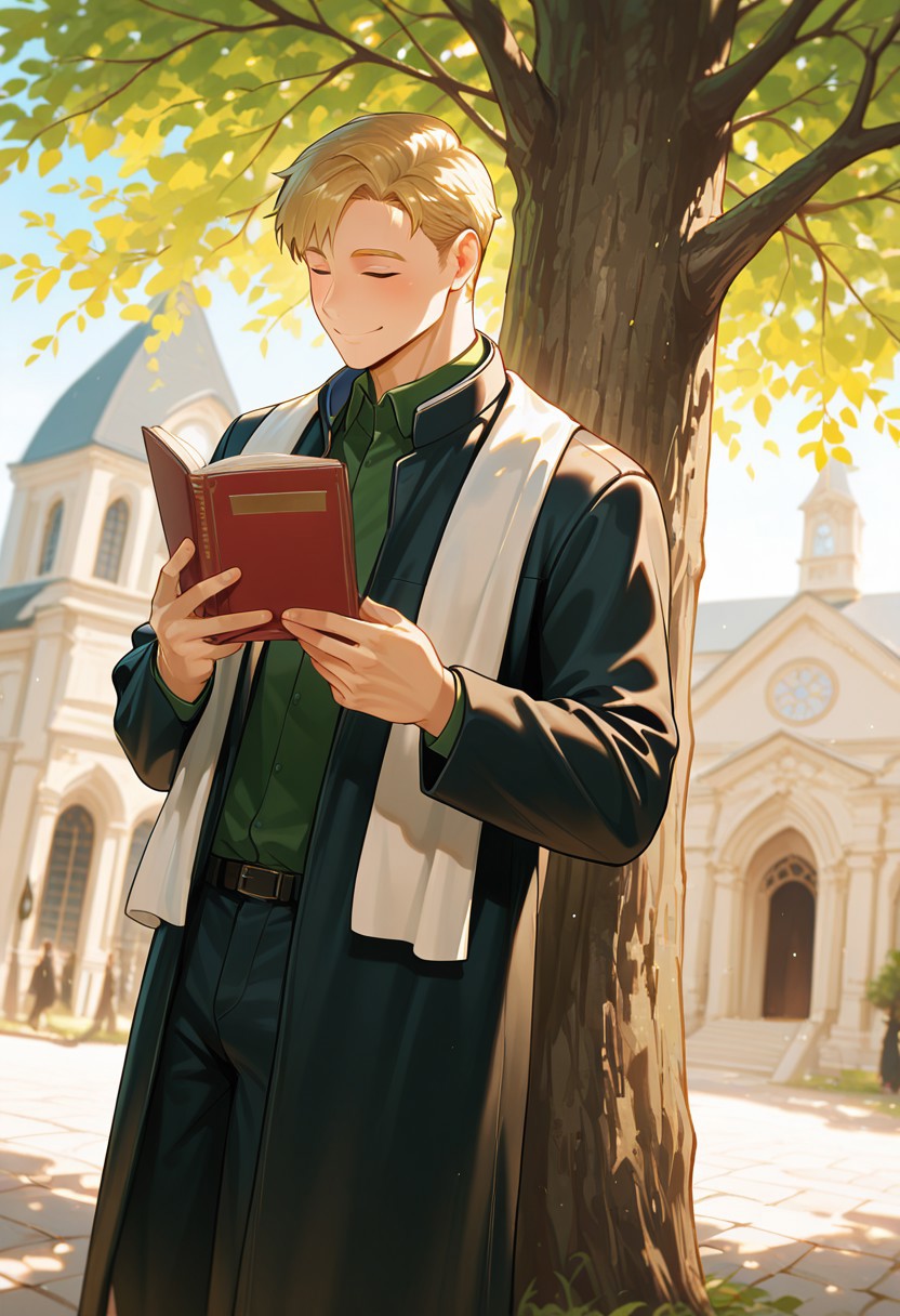 carter_priest, 1boy, short hair, blonde hair, closed eyes,