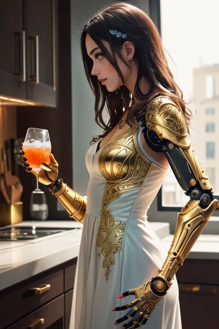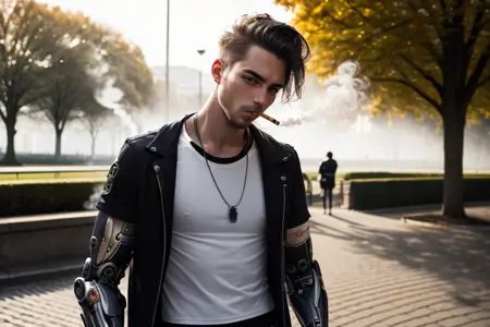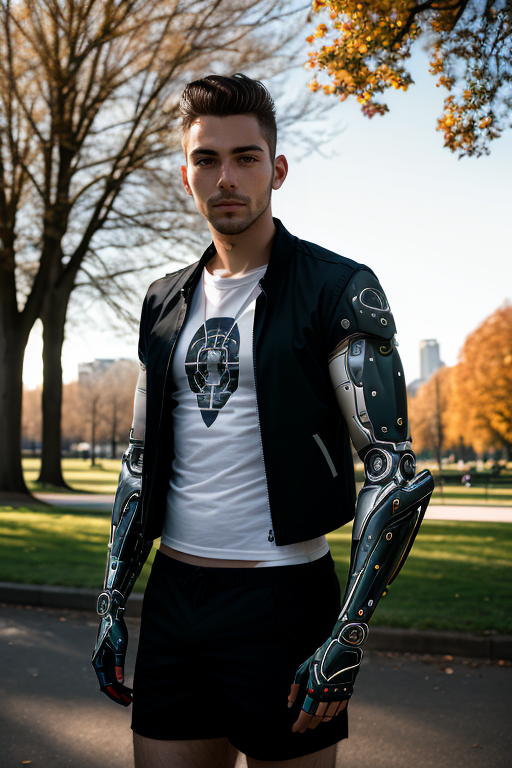LoRA createは、キャラクターの手の代わりにサイバープロテシスを生成します。