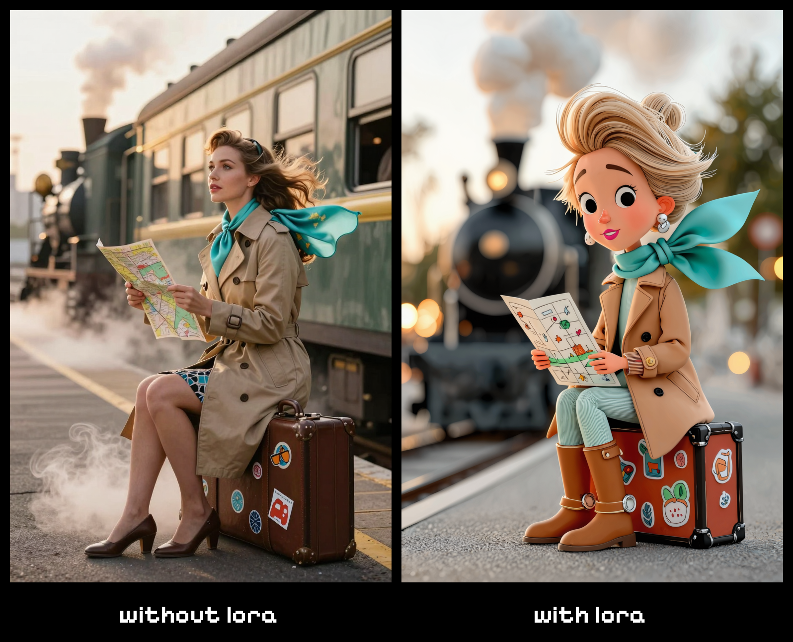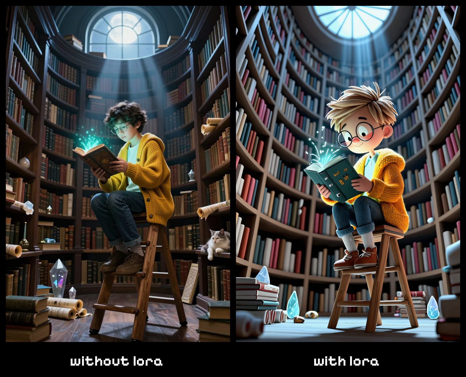 • LoRA 강도는 0.7로 시작하여 효과를 강하게 원하면 0.9로 증가시키세요
