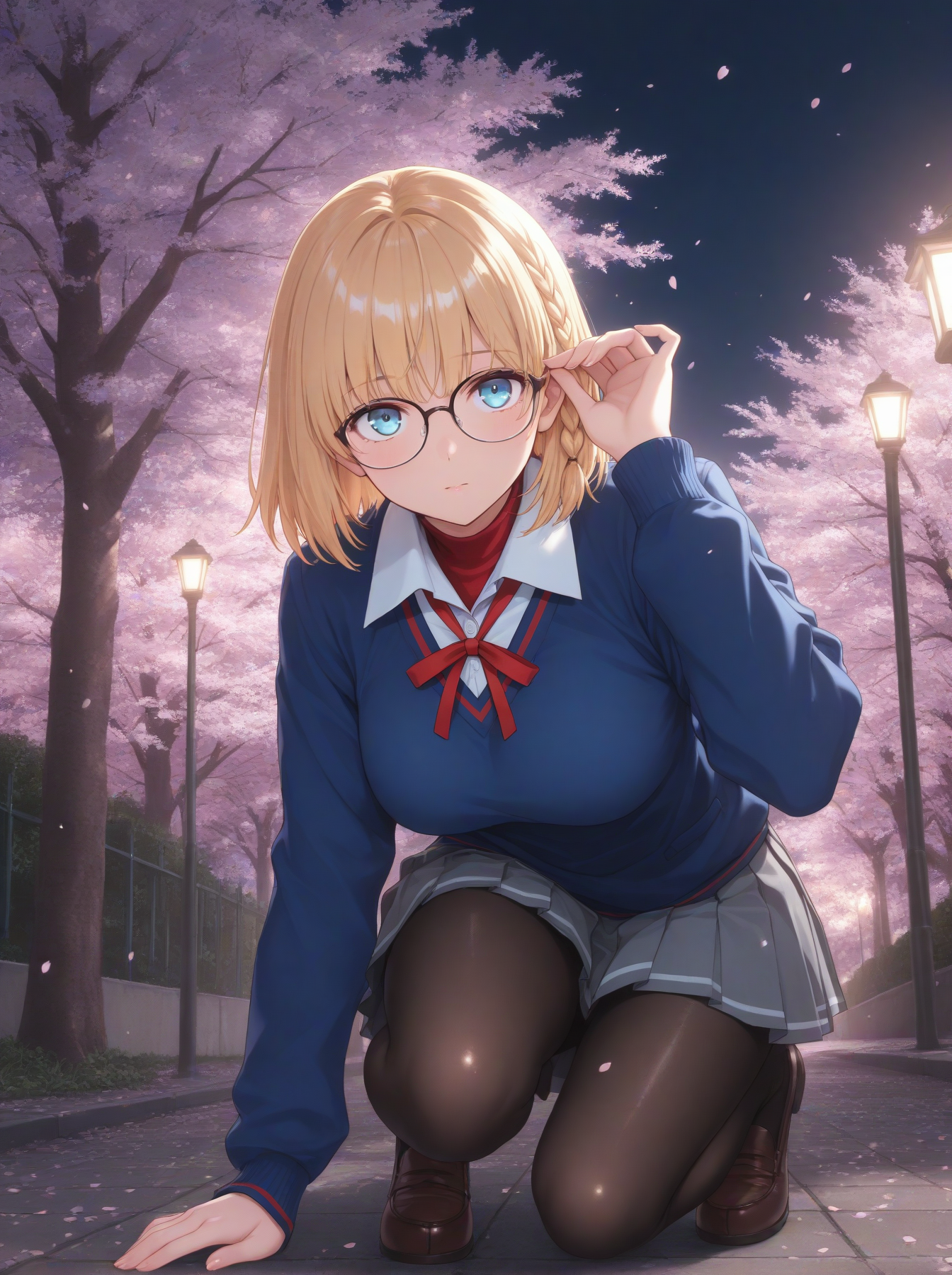 캐릭터: (AyakaFate, 파란 눈, 금발, 단발, 땋은 머리, 안경)