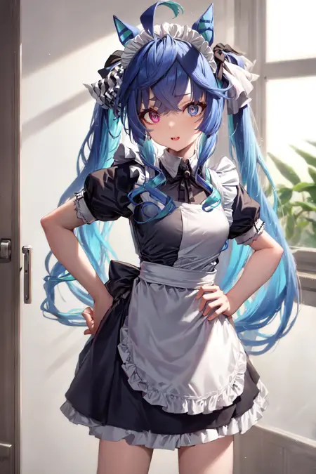 - 긴 머리, 매우 긴 머리, 투웨이트ails, 눈 사이 머리카락, 보라색 머리카락, 파란 머리카락, 아쿠아 머리카락, 투톤 머리카락, 다채로운 머리카락, 앞머리, 교차 앞머리, 아호게, 초록 머리카락, 그라데이션 머리카락, 머리 리본, 줄무늬 리본, 흰색 리본, 리본, 검은 리본, 귀 리본, 머리 묶기