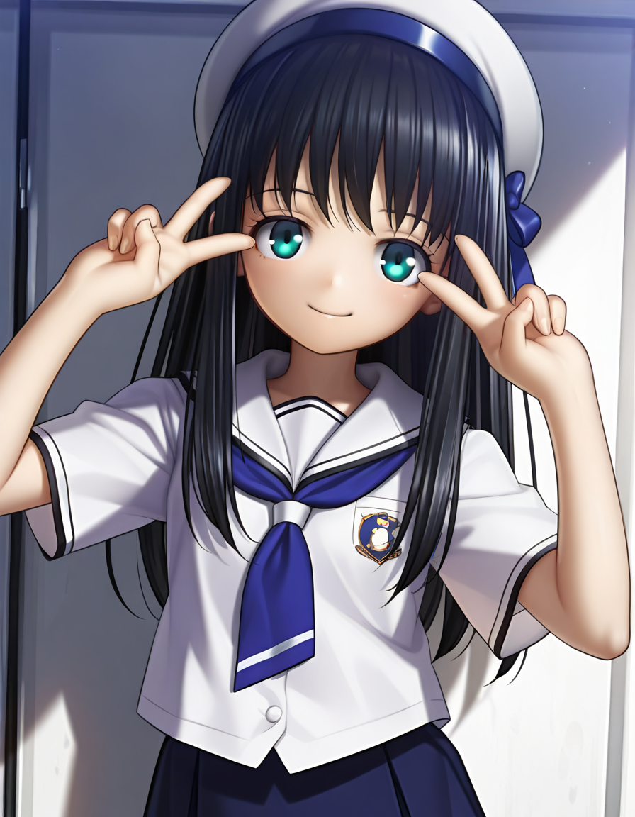 jplt-girt, school uniform, white shirt, blue neckerchief, buttons, blue skirt, sailor hat, hat ribbon