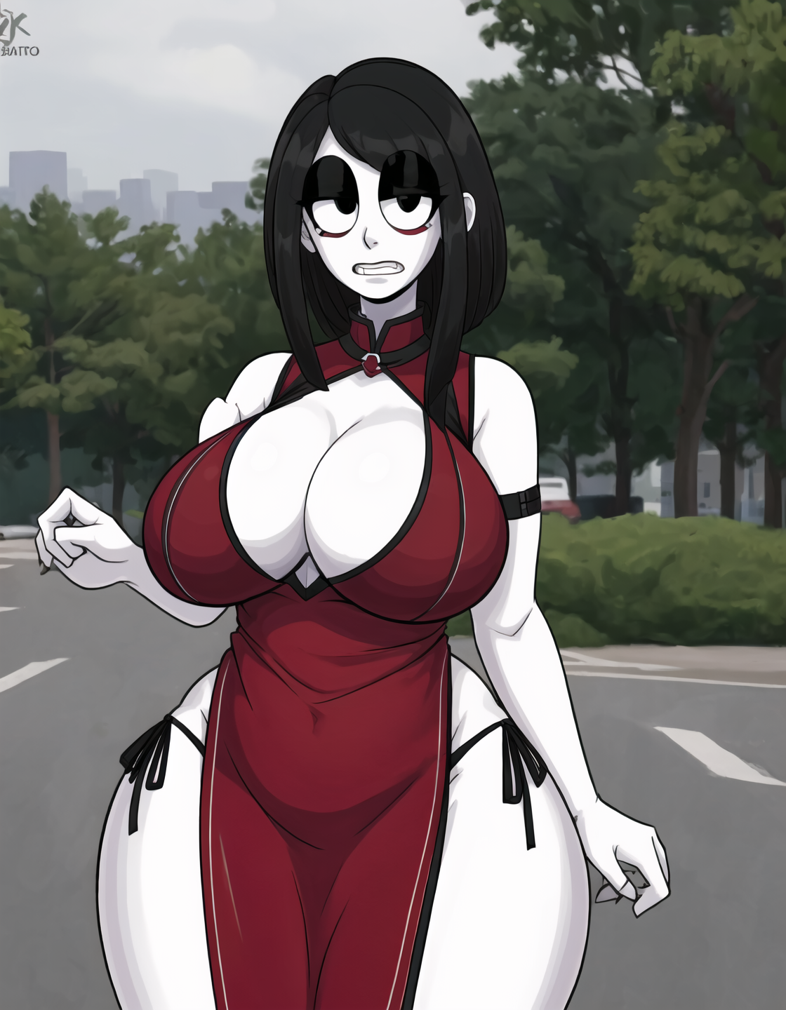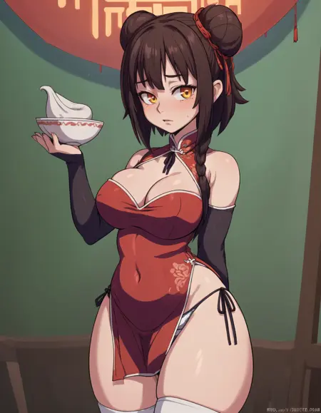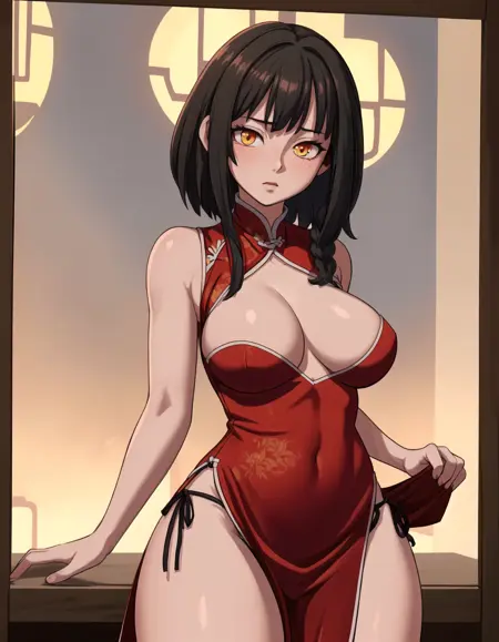 主な焦点プロンプト: ドレス、サイドタイパンツ、側面スリット、骨盤カーテン