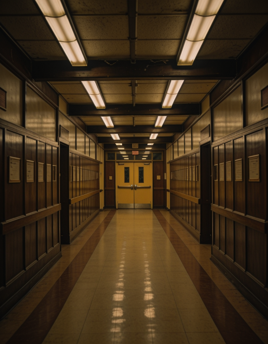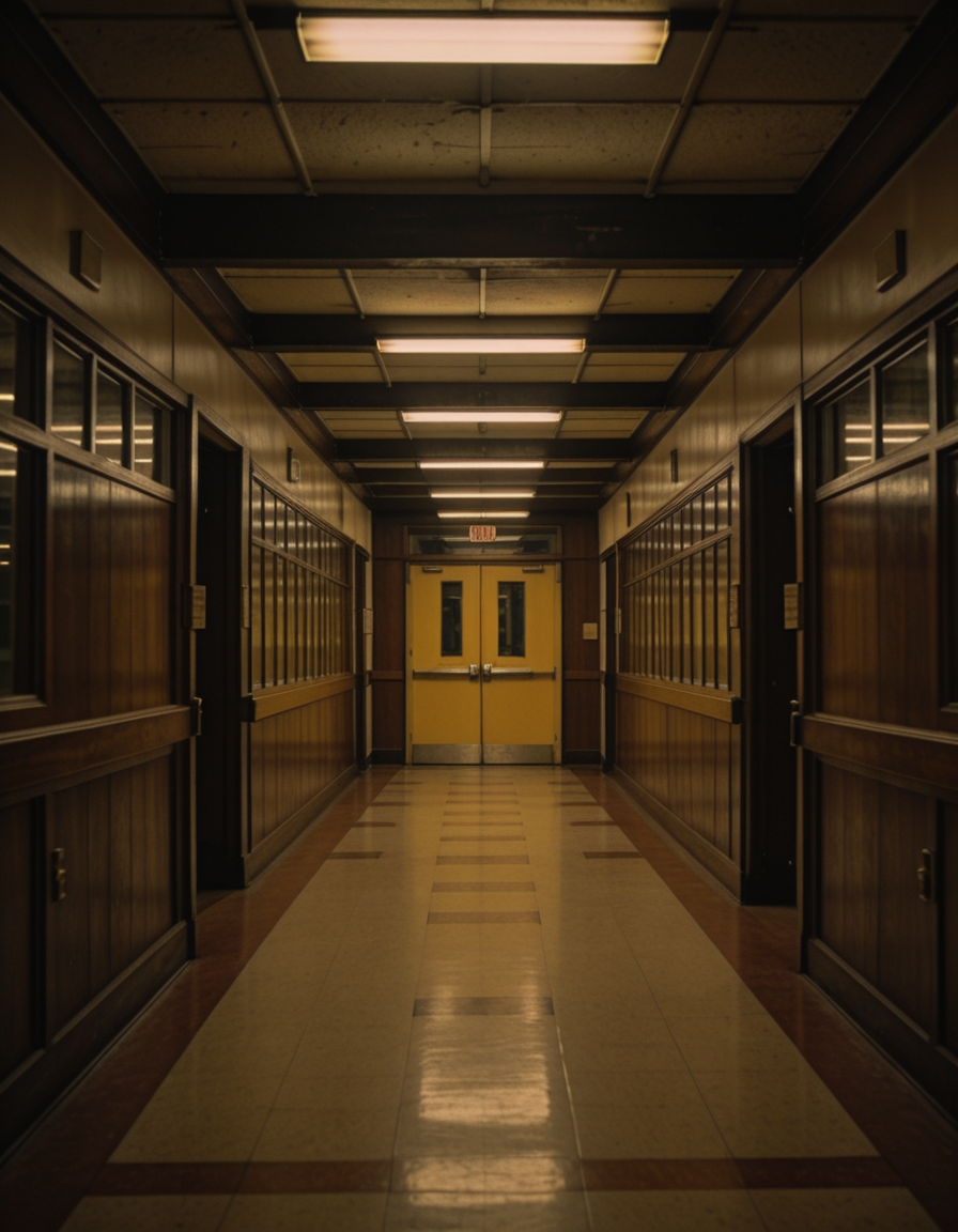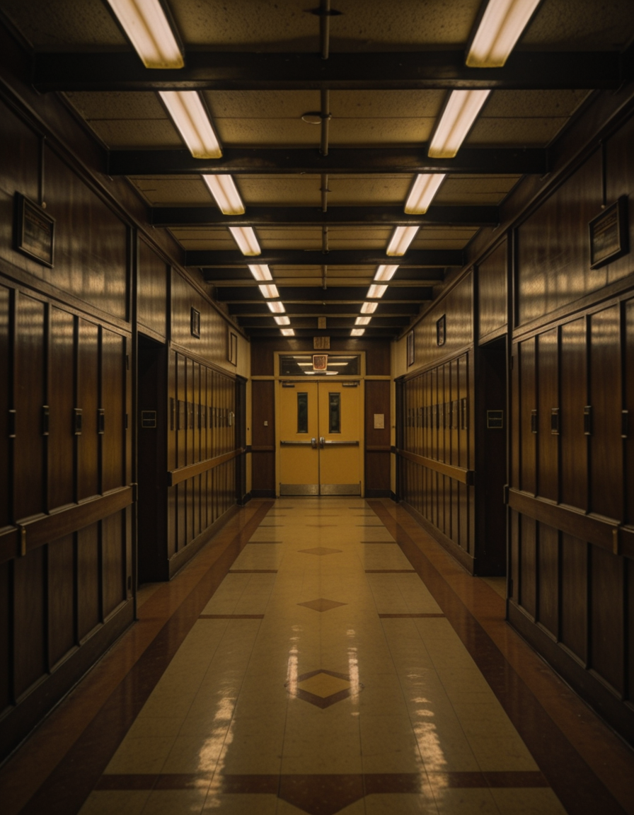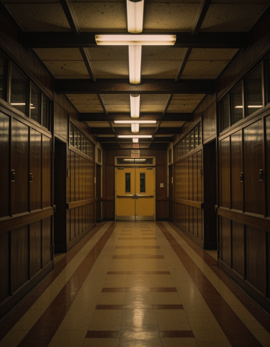 1980s high school hallway interior illu