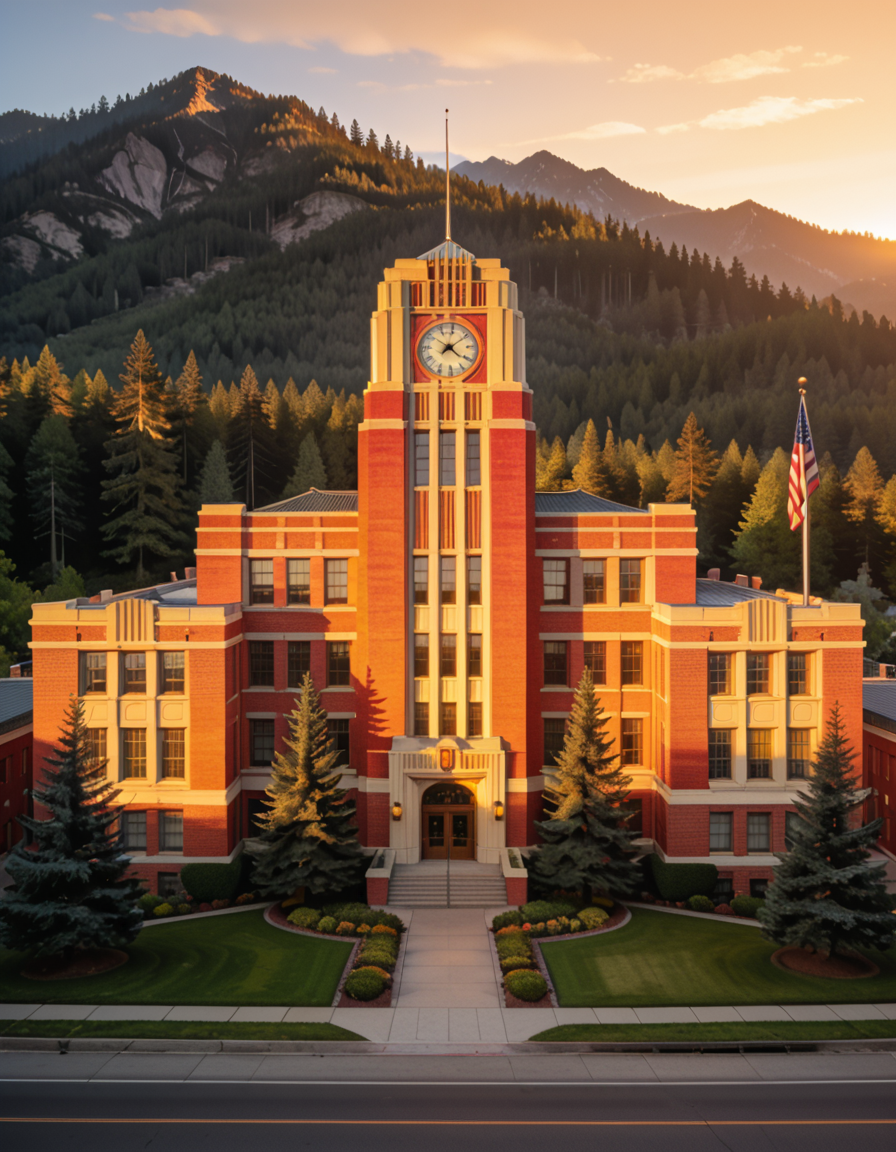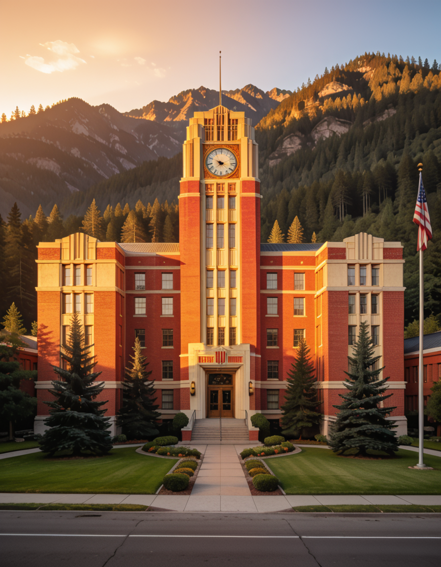 Institutional brick building pony