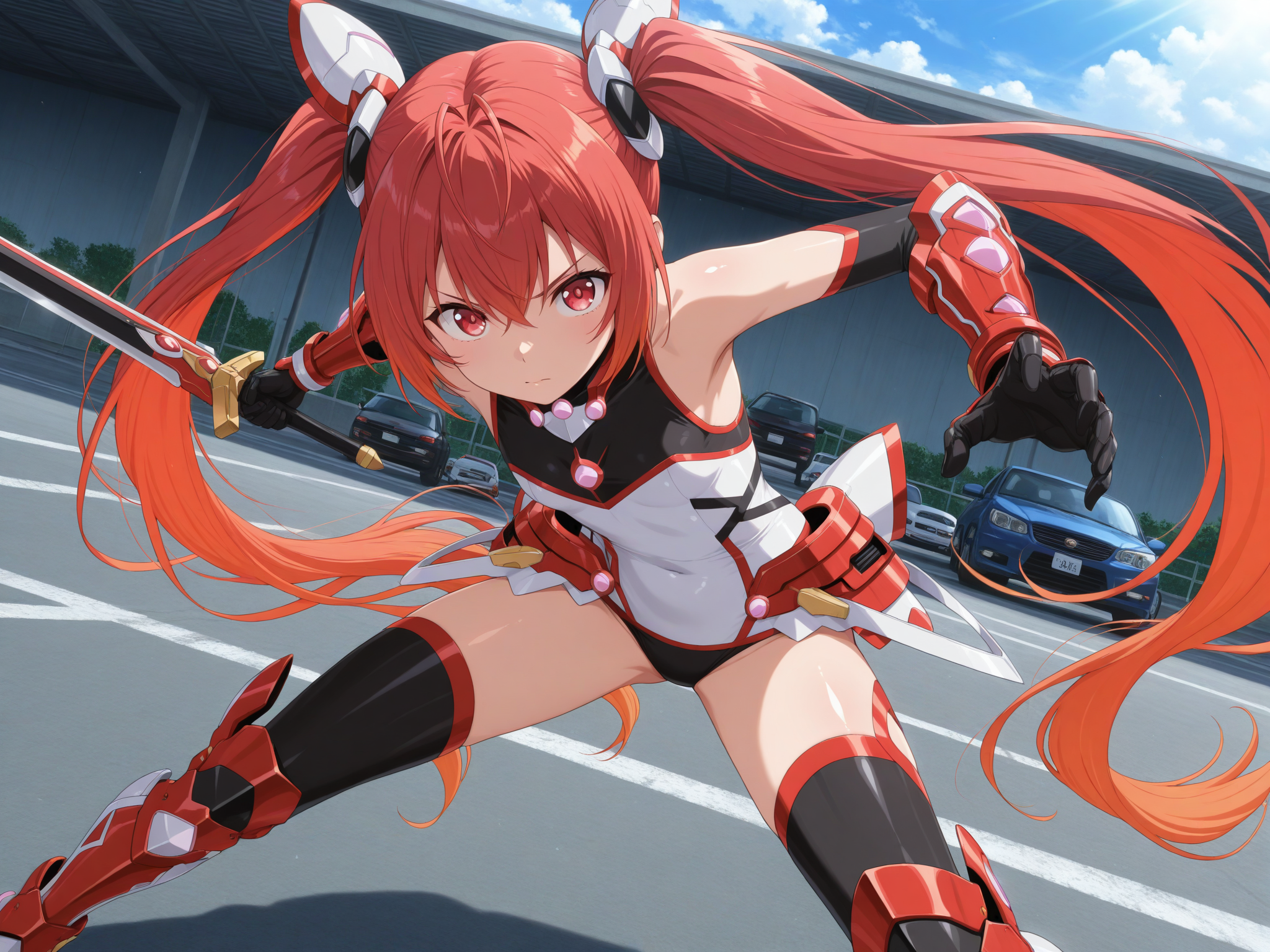 캐릭터: (테일레드, 빨간 눈, 그라데이션 머리카락, 빨강 주황색 머리카락, 매우 긴 트윈테일),