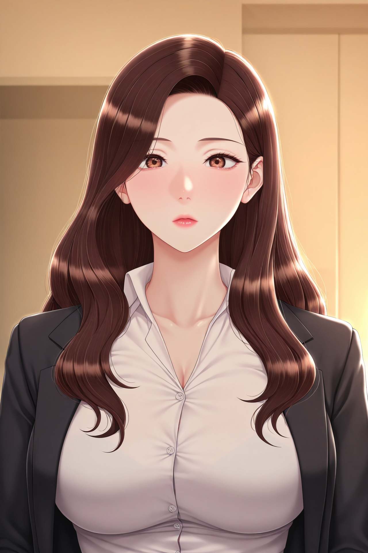 Sohee LEE,long hair,brown hair,brown eyes,adult,mature female,large breasts,
