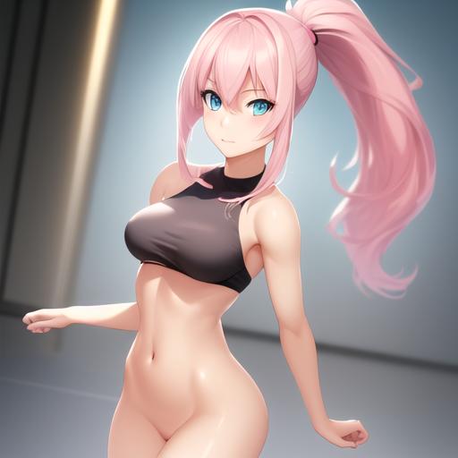 パステルピンクのポニーテール、スリムなプロポーションの体、明るくてかわいい表情を持つ成人女性アニメキャラを生成するのに最適です。