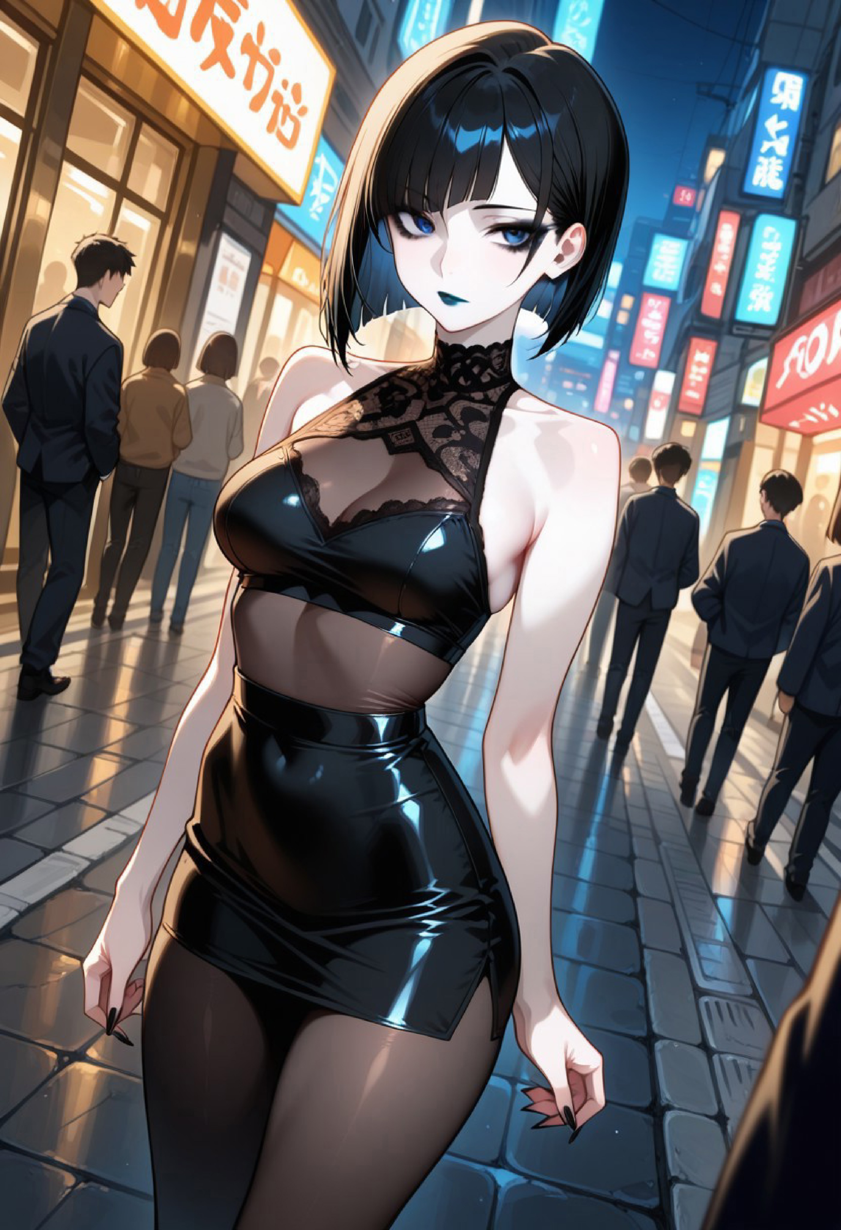 | 학습된 단어 | 1girl, ghotic girl, pale skin, black hair, very short hair, pixie cut, black eyeliner drama, dark blue eyes, black lipstick, medium breasts,복사됨! 1girl, ghotic girl, pale skin, black hair, asymmetric cut hair, short hair, bob cut, black eyeliner drama, dark blue eyes, black lipstick, medium breasts,복사됨! |