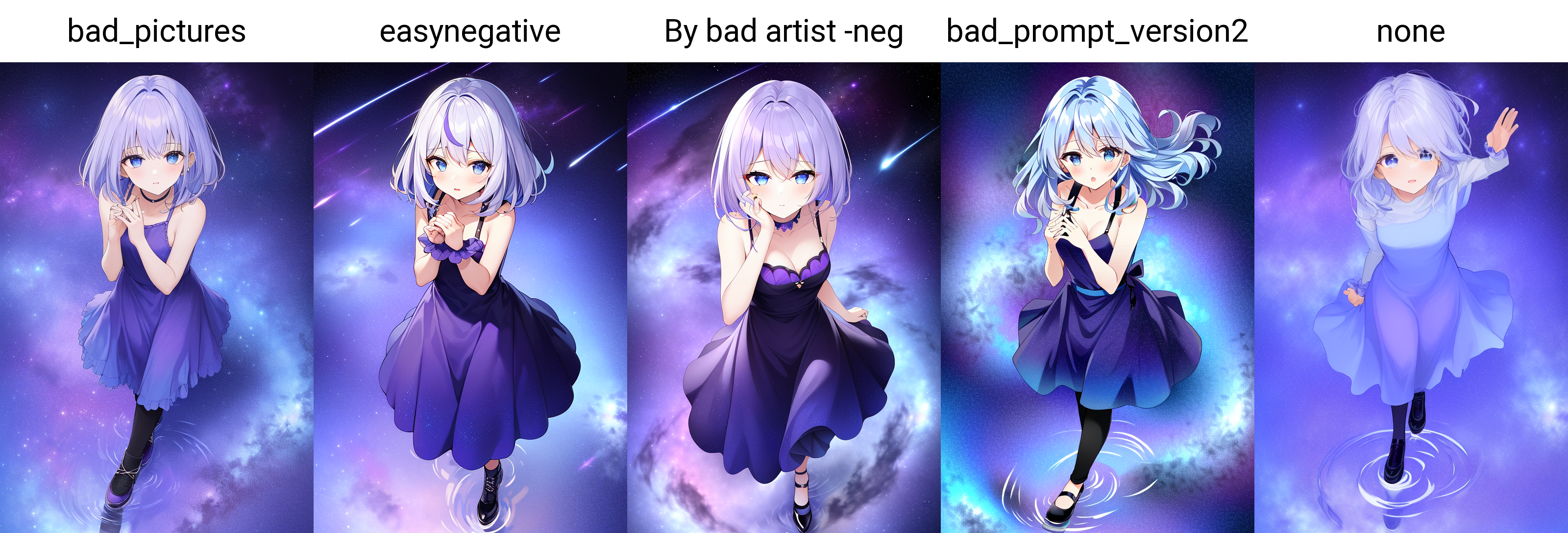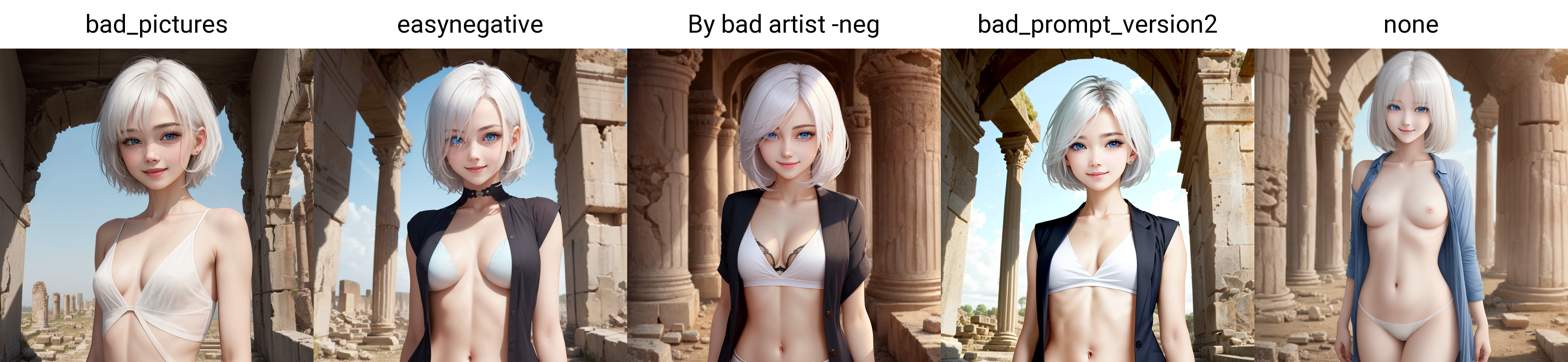 アーティファクトが見られる場合は、次のように重みを調整して試すことができます:(bad_pictures:1.1) または (bad_pictures:0.8)。