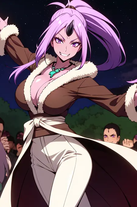 I originally had her white pants as a trigger word but for some maddening reason it would turn her coat white as well.