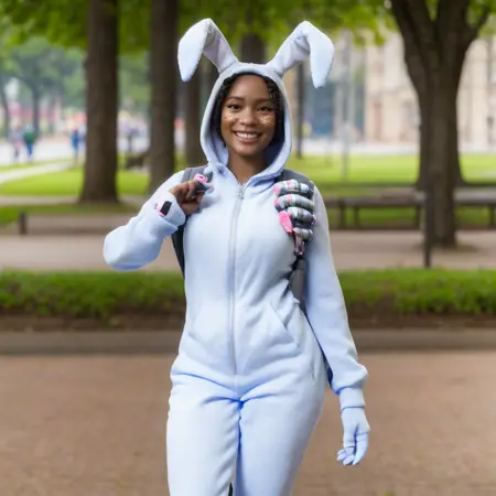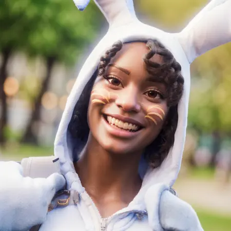 Trigger : luna, dressed, bunny, with, ears, and, mask