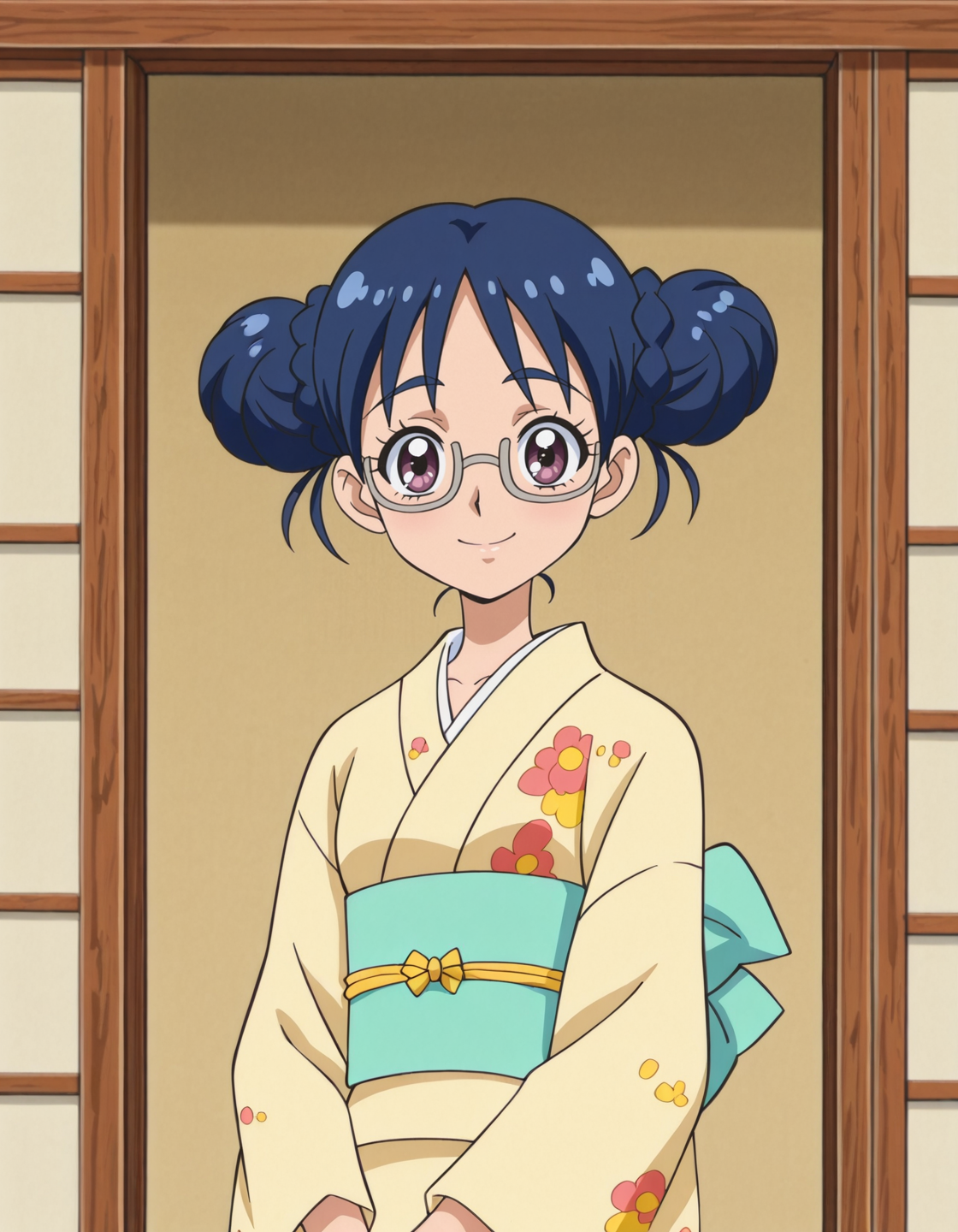 アニメスクリーンキャプチャ、ソロ、1人の女の子、nanaseyui、yuiyukata、着物、帯、二つ結び、lora:nanaseyui_IL:0.8高解像度、素晴らしい品質、最上品質、非常に審美的、傑作、absurdres、