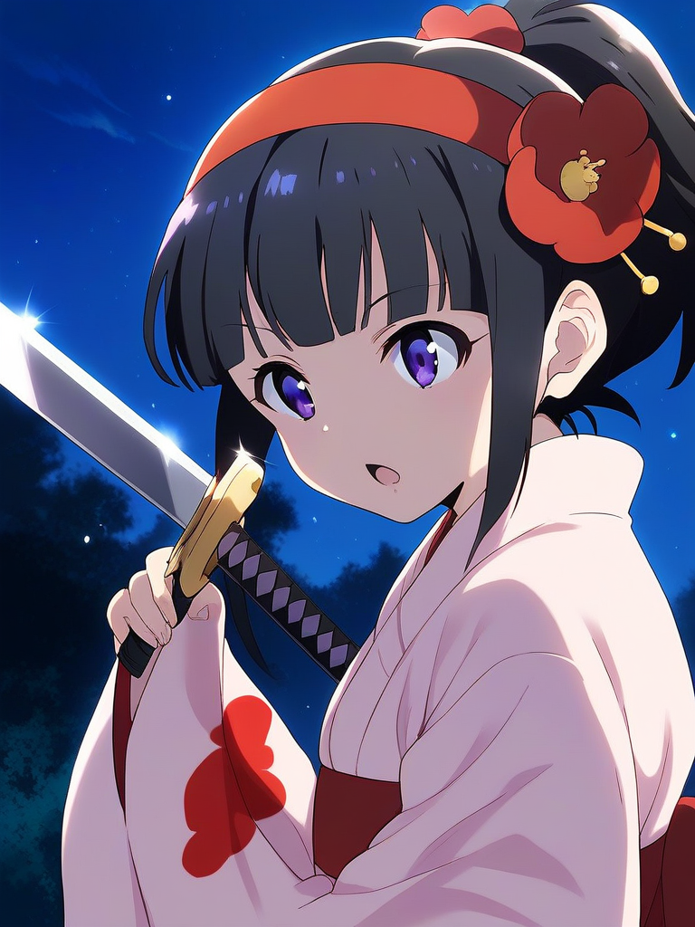 포니테일, 무기 들고, 빨간 헤어밴드,