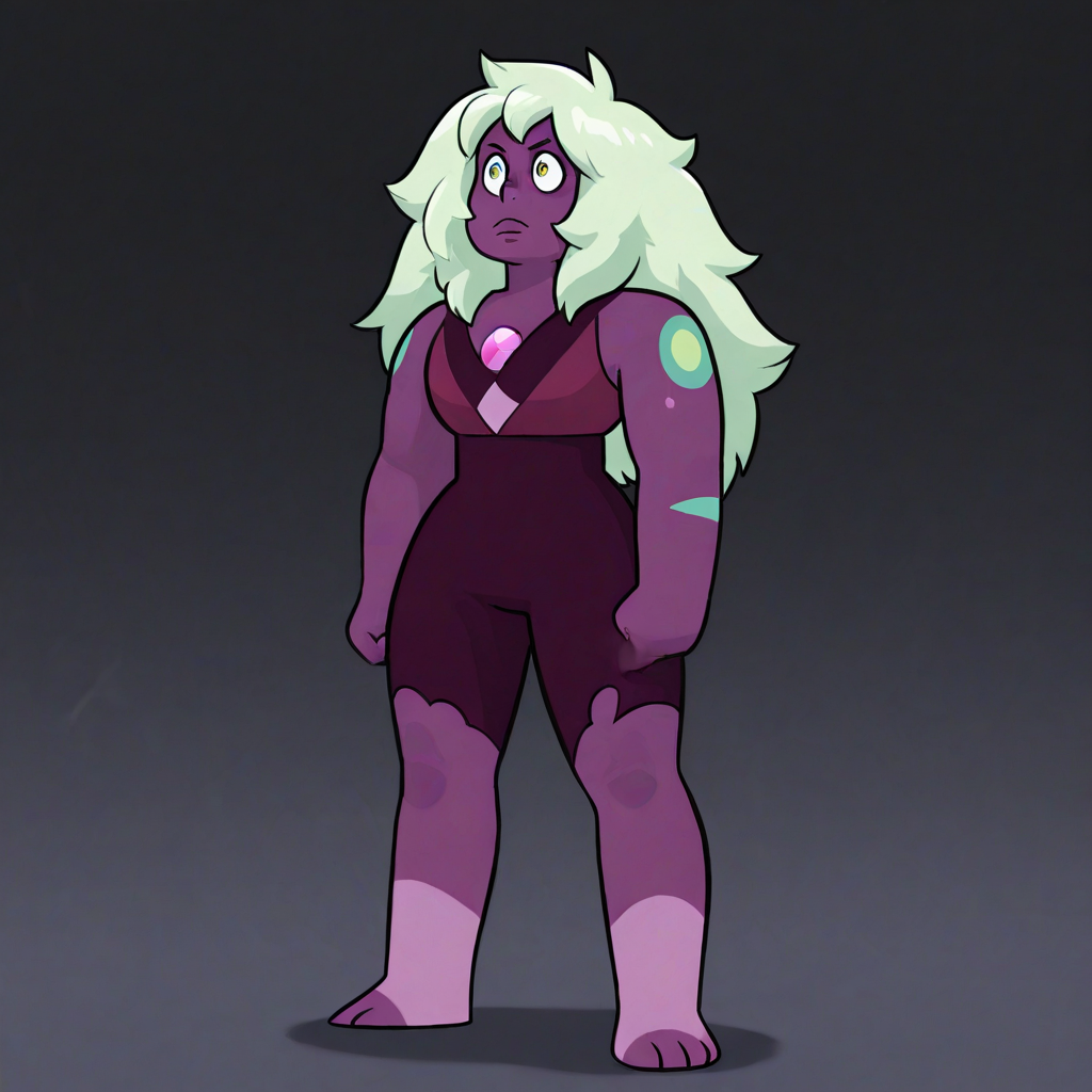 아메시스트, 재스퍼, 로즈 쿼츠, 블루 다이아몬드 유니폼, 옐로우 다이아몬드 유니폼, 핑크 다이아몬드 유니폼(어떤 기적인지), 화이트 다이아몬드 유니폼(어떻게 그런지 모르겠고, 데이터셋에서 전혀 유도하지 않았음)을 인식합니다. 또한 일부 보석 위치("가슴 보석", "허리 보석, 왼쪽 허리 보석", "배꼽 보석" 등)도 인식합니다. Holly Blue와 유사한 아가트를 인식하도록 시도했지만, 어찌 된 일인지 작동하지 않았습니다. 또한 오염 흉터(뿔)를 인식하도록 시도했지만, 이것도 작동하지 않았습니다. 그러나 "뿔"이라고 프롬프트하면 일반적으로 쿼츠 스타일의 뿔을 생성합니다. 인식하지 못하는 알려진 보석 위치: 눈 보석(양쪽 모두). 인식은 하지만 잘 하지 못하는 알려진 보석 위치: 어깨 보석(양쪽 모두), 볼 보석(양쪽 모두). 보통 홈월드 유니폼의 일종으로 기본 설정됩니다. 드물게 무작위로 뿔을 추가합니다. 원하는 결과를 얻기 위해 종종 많은 실험과 반복 생성이 필요합니다.