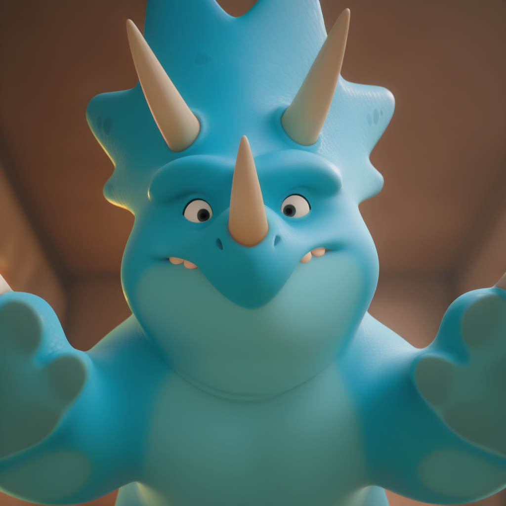pttybddnsrs_il, dinosaur, triceratops, feral, female, blue skin, fat, overweight, no humans, horns