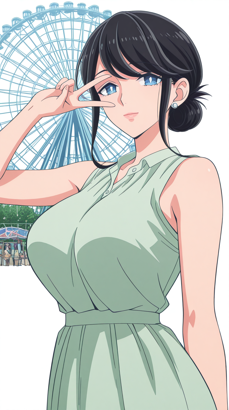 nao shiota, 파란 눈, 검은 머리, 단일 머리 뾰족, 측면 머리카락, 앞머리, 성숙한 여성, 큰 가슴, 애니메이션 스크린캡