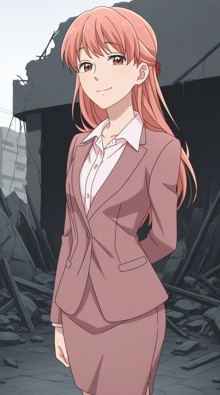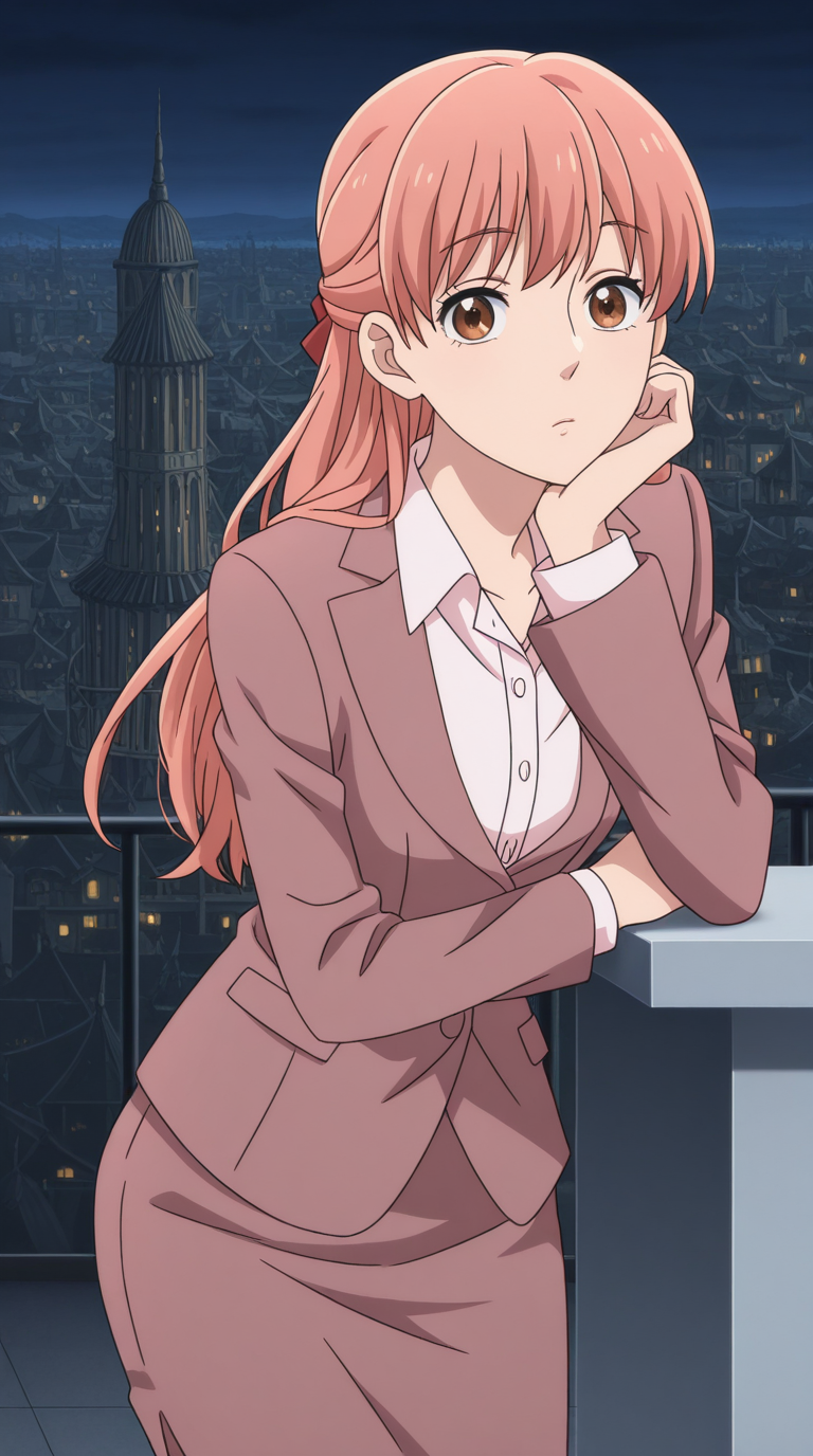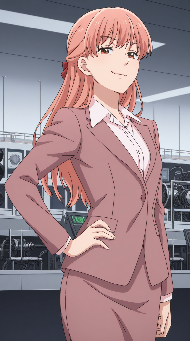 나루미 모모세, 긴 머리, 갈색 눈, 분홍색 머리, 반올림 헤어스타일, 헤어 리본, 성숙한 여성, 작은 가슴, 애니메이션 스크린캡