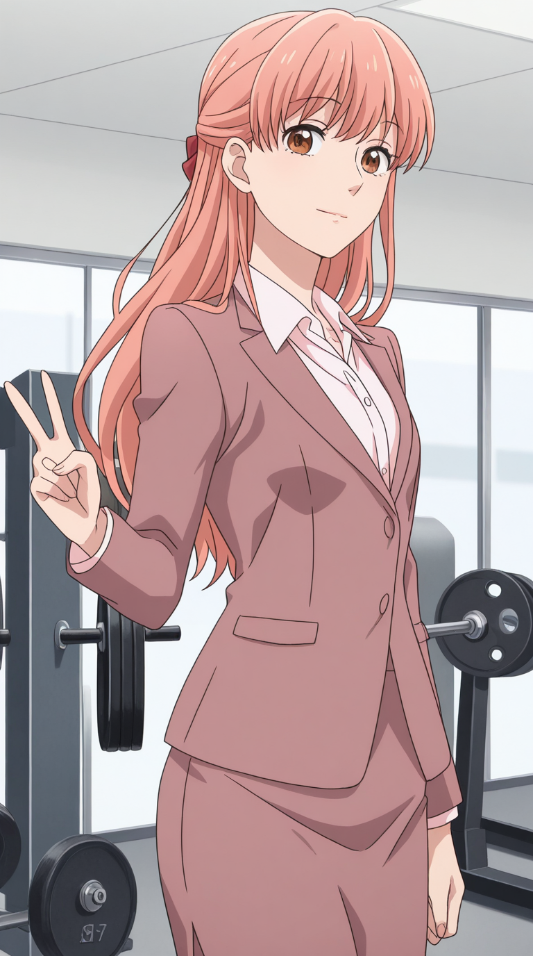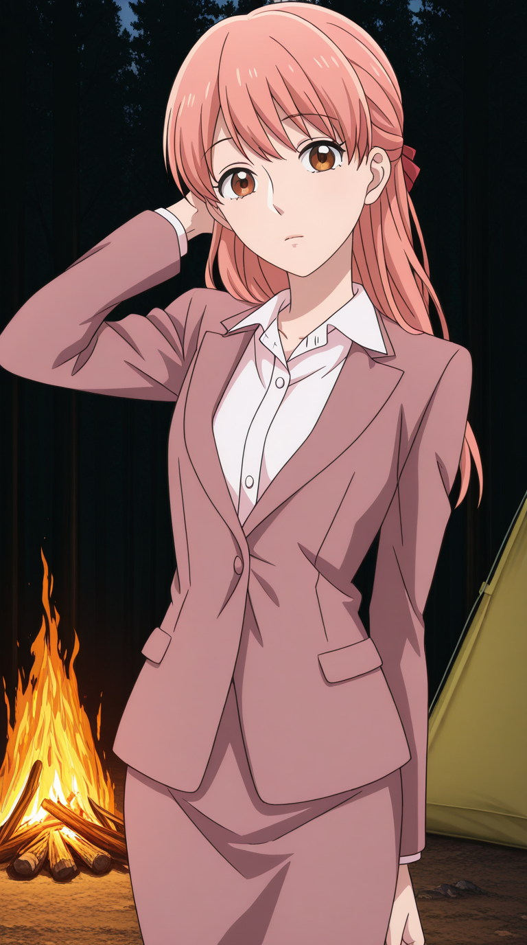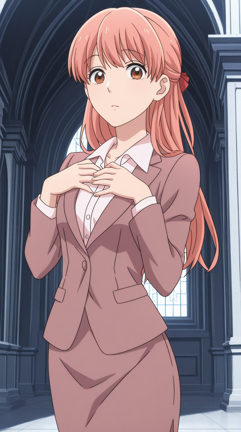 나루미 모모세, 긴 머리, 갈색 눈, 분홍색 머리, 반올림 헤어스타일, 헤어 리본, 성숙한 여성, 작은 가슴, 애니메이션 스크린캡