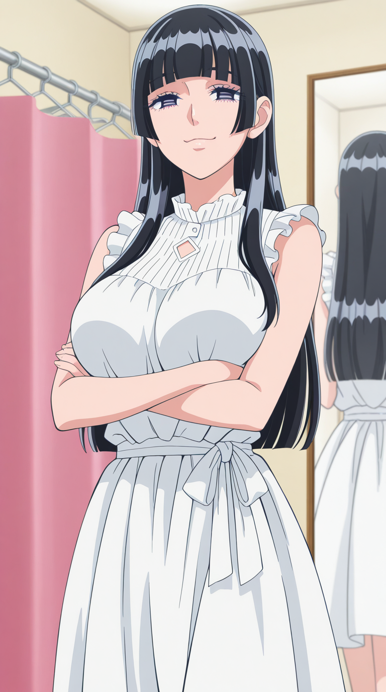 츠바키 아카시가타, 긴 머리, 앞머리, 검은 머리, 히메컷, 둔한 앞머리, 보라색 눈, 성숙한 여성, 큰 가슴, 애니메이션 스크린캡