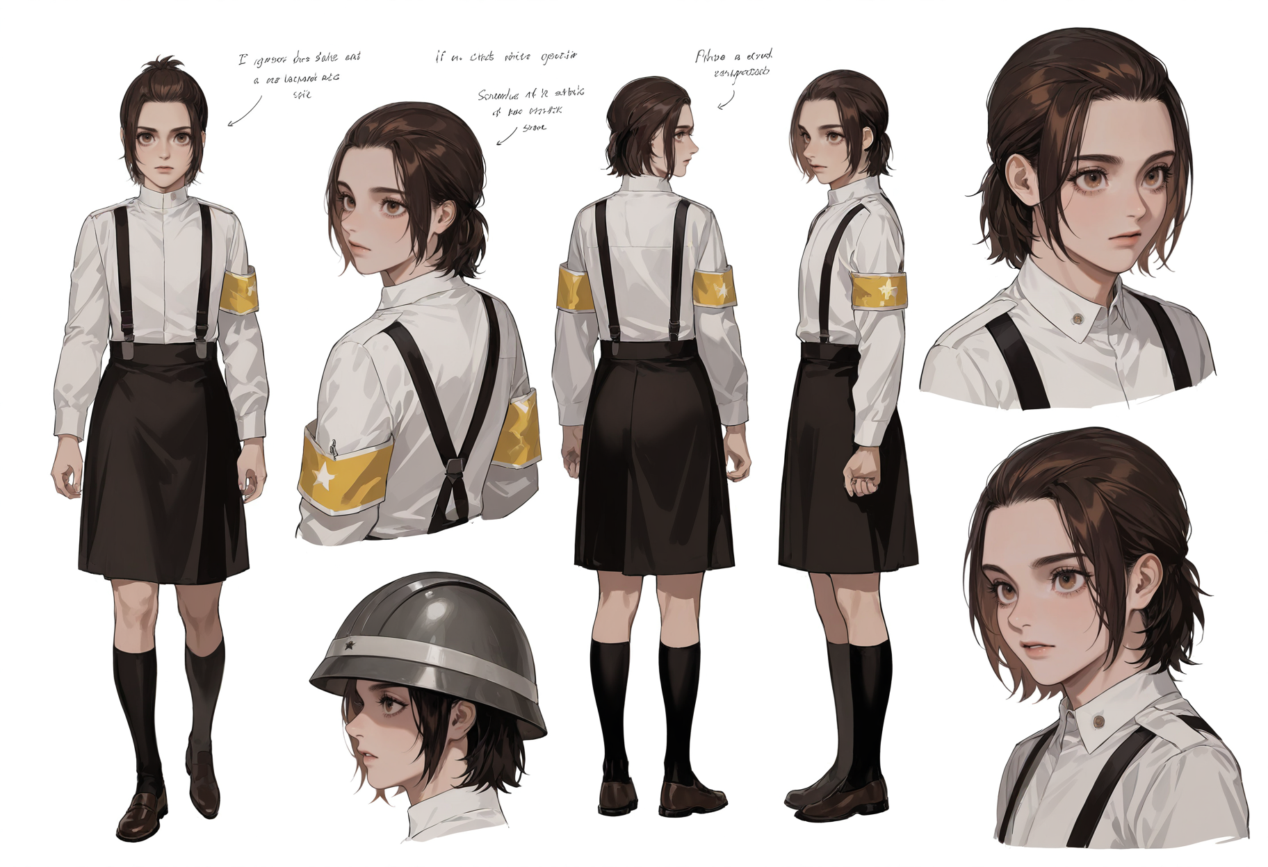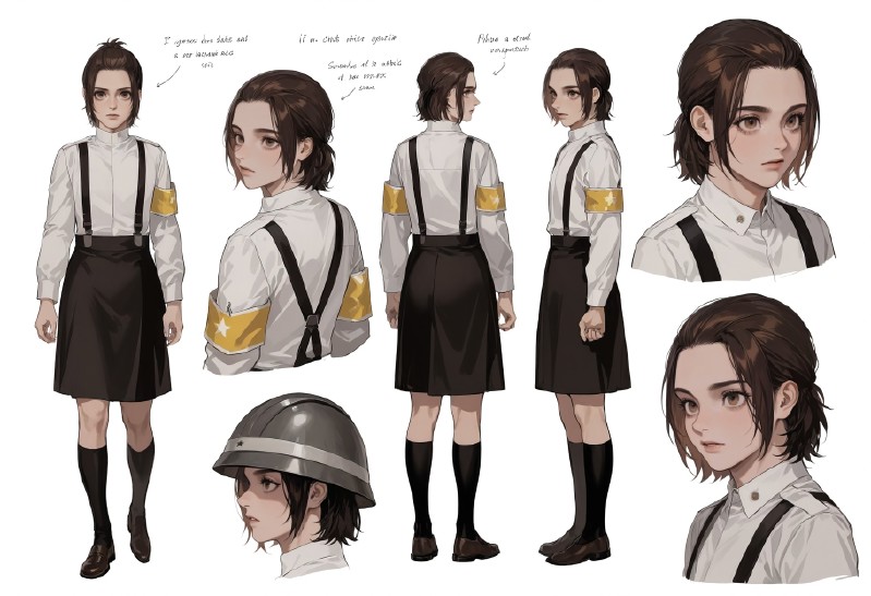 짧은 머리, 속눈썹, 헬멧, 스스펜더, 유니폼, 군복, 팔찌, 셔츠, 학교 유니폼, 흰 셔츠, 군사