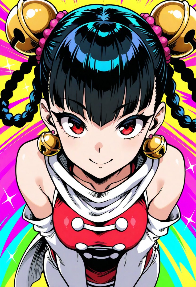 opmlinlin、lin lin \(ワンパンマン\)、赤い目、黒髪、短髪、V字前髪、ツインバッツ、髪の輪、