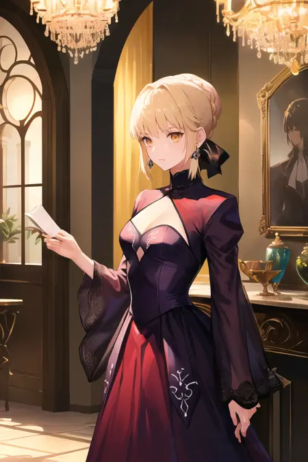 带蓬松袖子的黑色连衣裙 - 必须使用至少0.8的权重触发,若未生效,请手动添加蓬松袖子