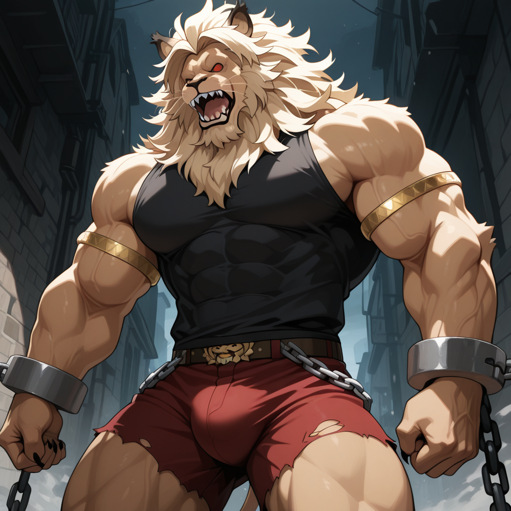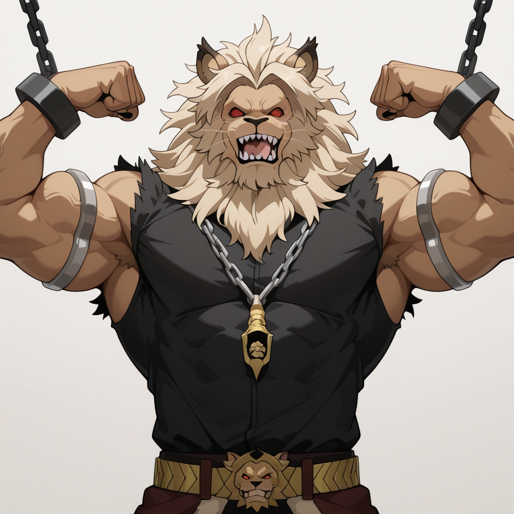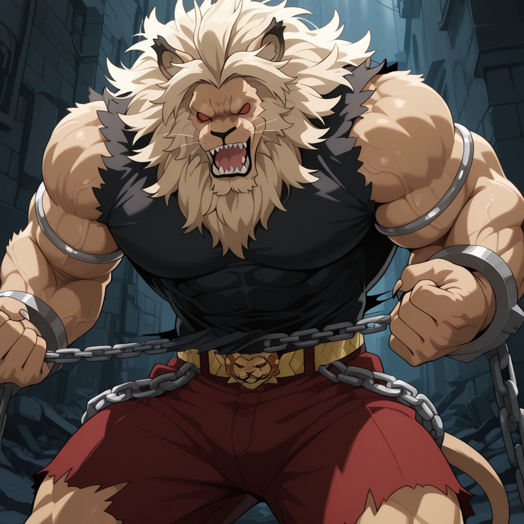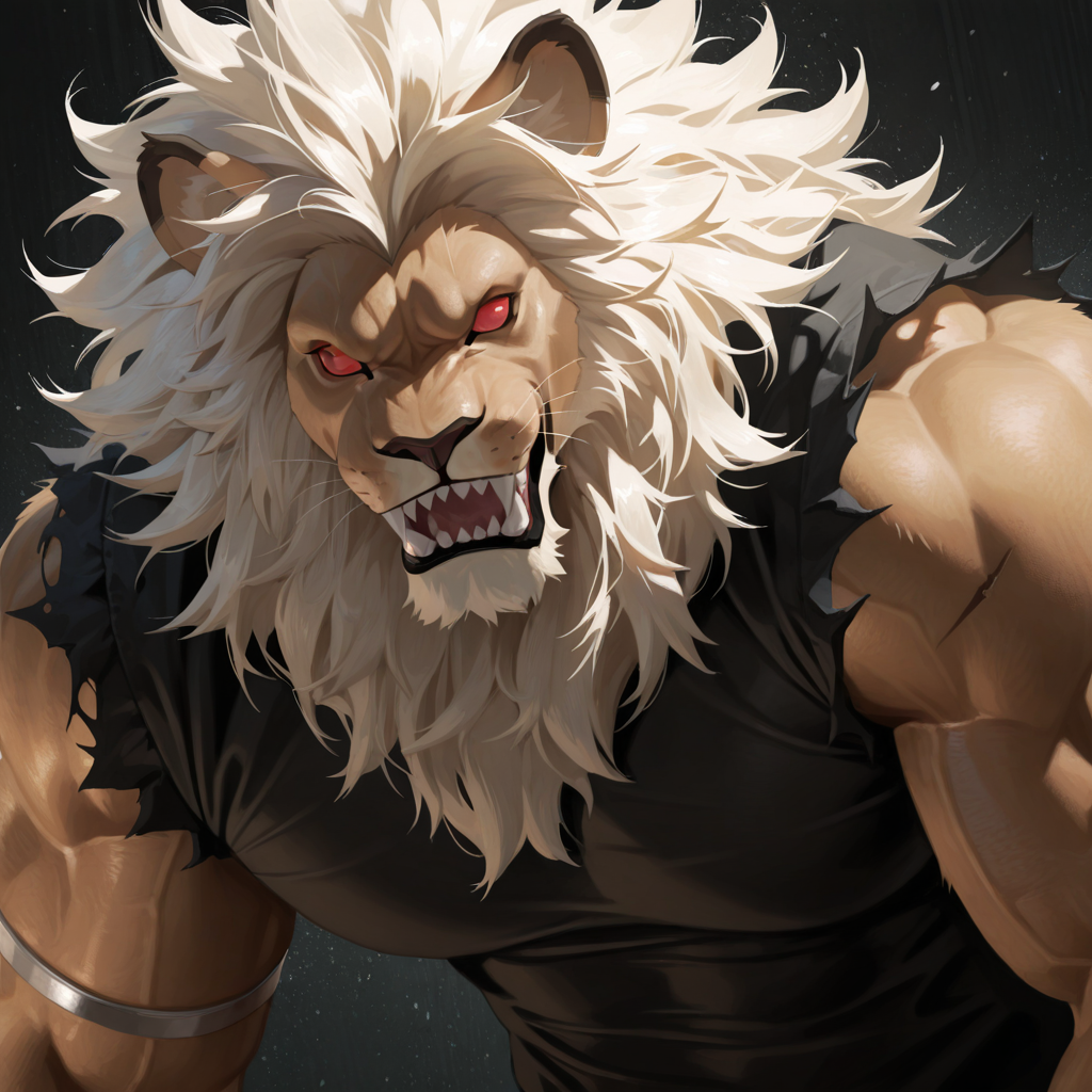트리거 단어: b3a5tk1ng, lion boy, red eyes