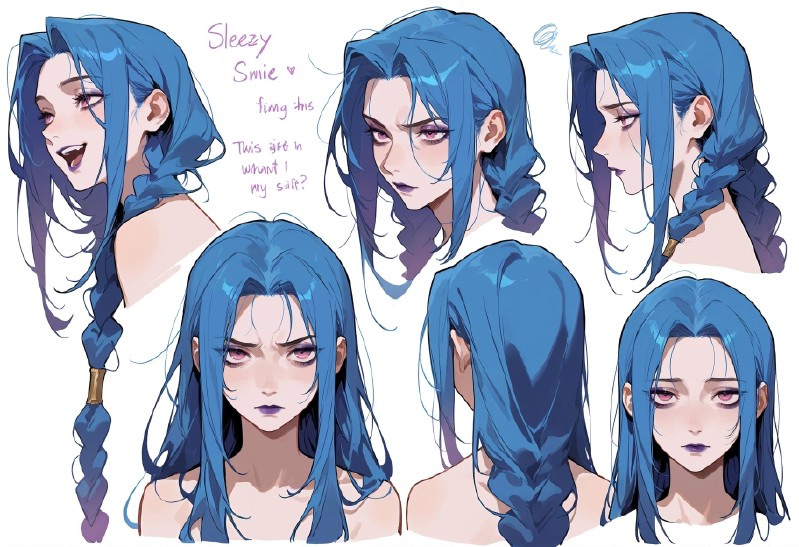 1girl,pink eyes,purple eyes,lips,makeup,blue hair,very long hair,long hair,bangs,asymmetrical bangs,braid,twin braids,twintails