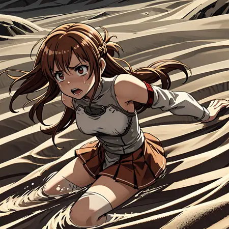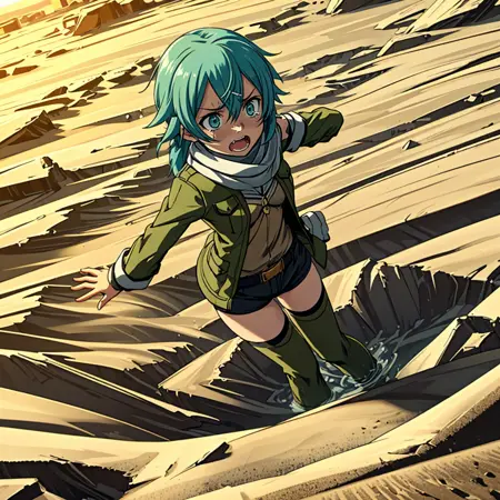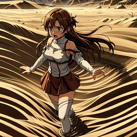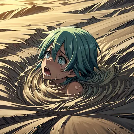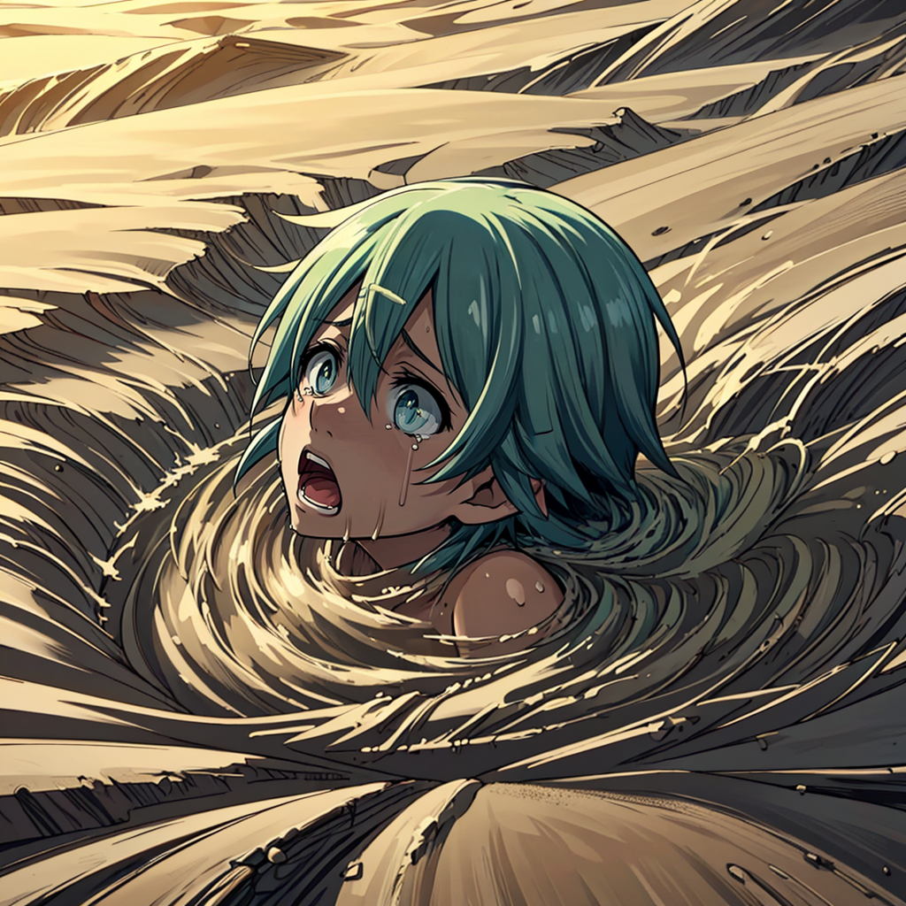 I have created a Lora depicting a scene where a person I like is sinking into a desert sand pit. This Lora can be created in three stages: in the first stage, only the feet are buried; in the second stage, half of the body is buried; and in the third stage, the scene where everything below the neck is buried can be generated.