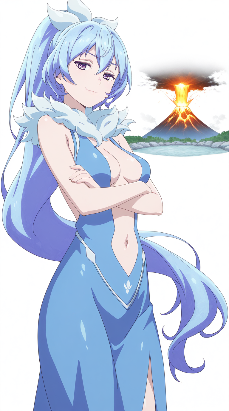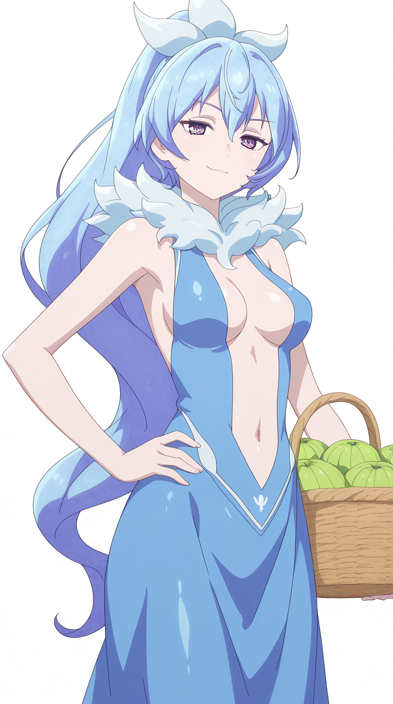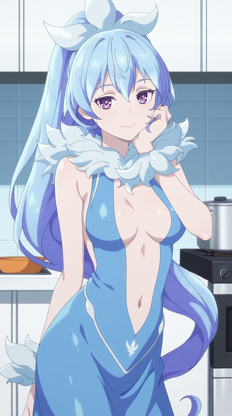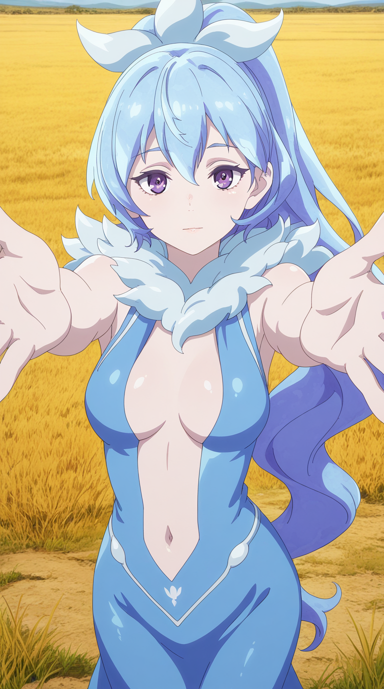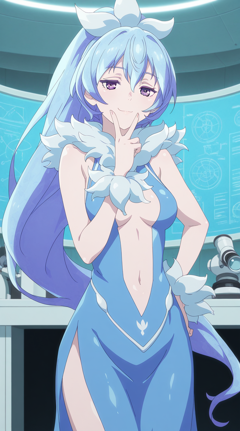 kyouko rikugen, 파란 머리, 보라색 눈, 긴 머리, 폰테일, 머리 띠, 성숙한 여성, 중간 크기 가슴, 애니메이션 스크린캡