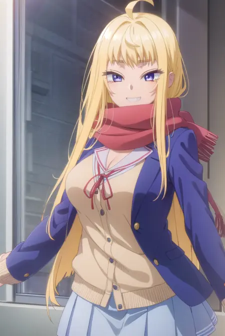 minami fuyuki,长发,金发,(紫色眼睛:1.1),天线辫,侧发,