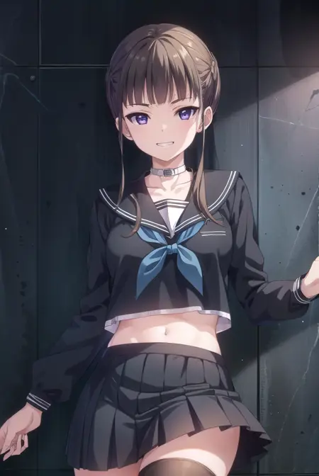 裙子,过膝袜,长袖,校服,serafuku,项圈,黑色过膝袜,黑色裙子,领子,绝对领域,黑色serafuku,