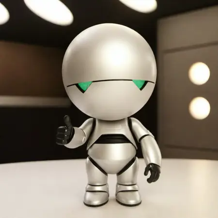 불안한 안드로이드 마빈은 더글라스 아담스의 《은하수를 여행하는 히치하이커를 위한 안내서》 시리즈에 등장하는 가상의 캐릭터입니다. 마빈은 항성선 '하트 오브 골드'에 탑승한 로봇으로, 서리스 사이버네틱스 사의 GPP(진짜 인간 성격) 기술의 수많은 실패한 프로토타입 중 하나로 제작되었습니다. 마빈은 심각한 우울증과 지루함에 시달립니다.