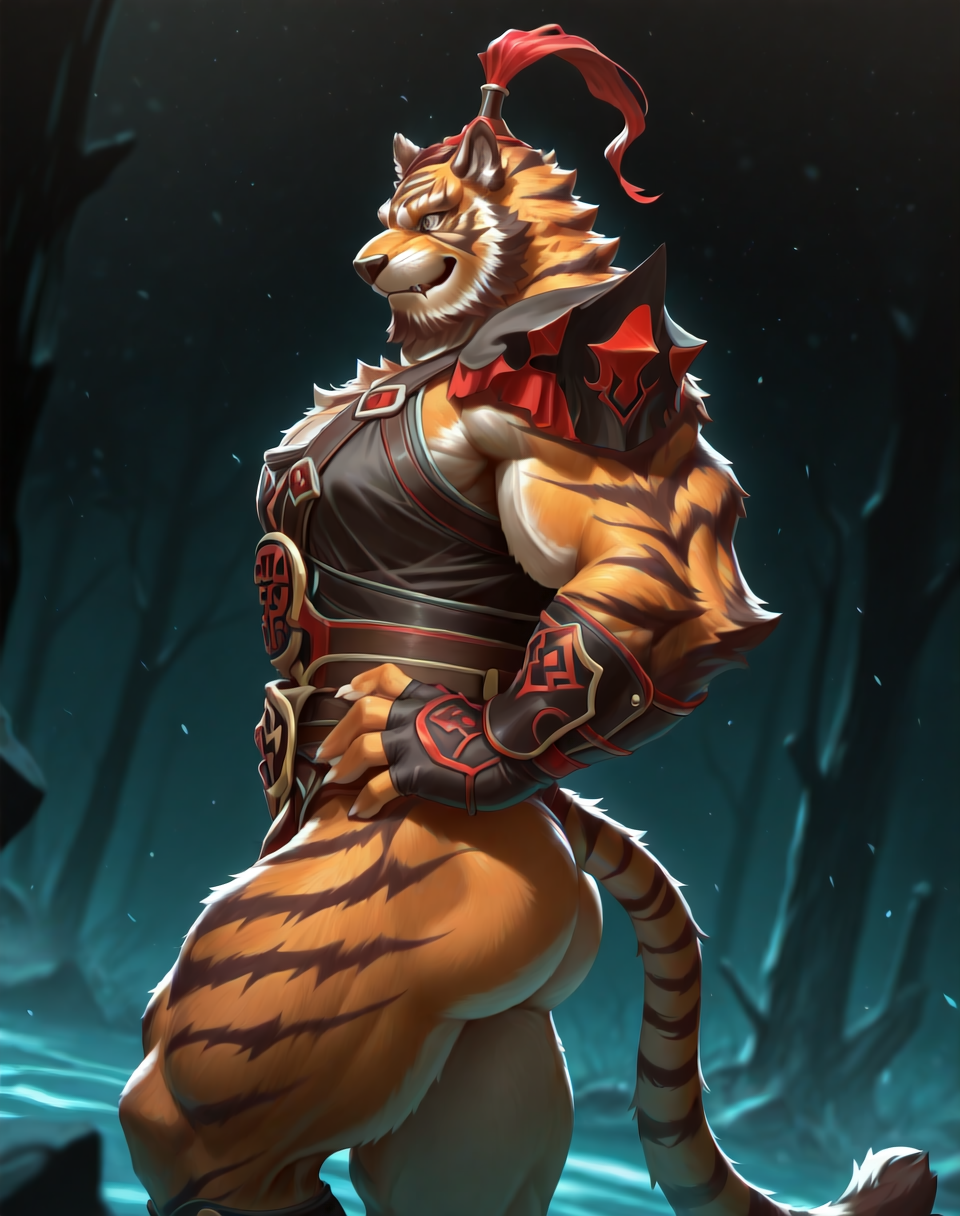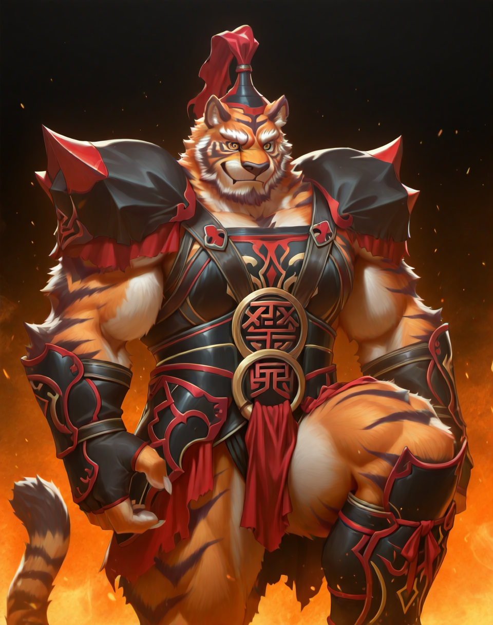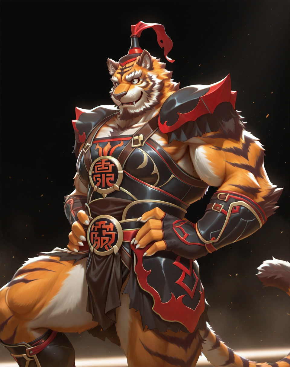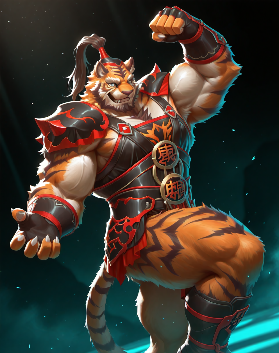 このLoRA用のプロンプトは以下の通りです:(ライヒ、筋肉質、虎)