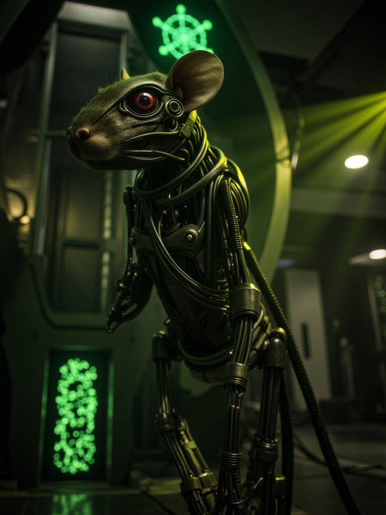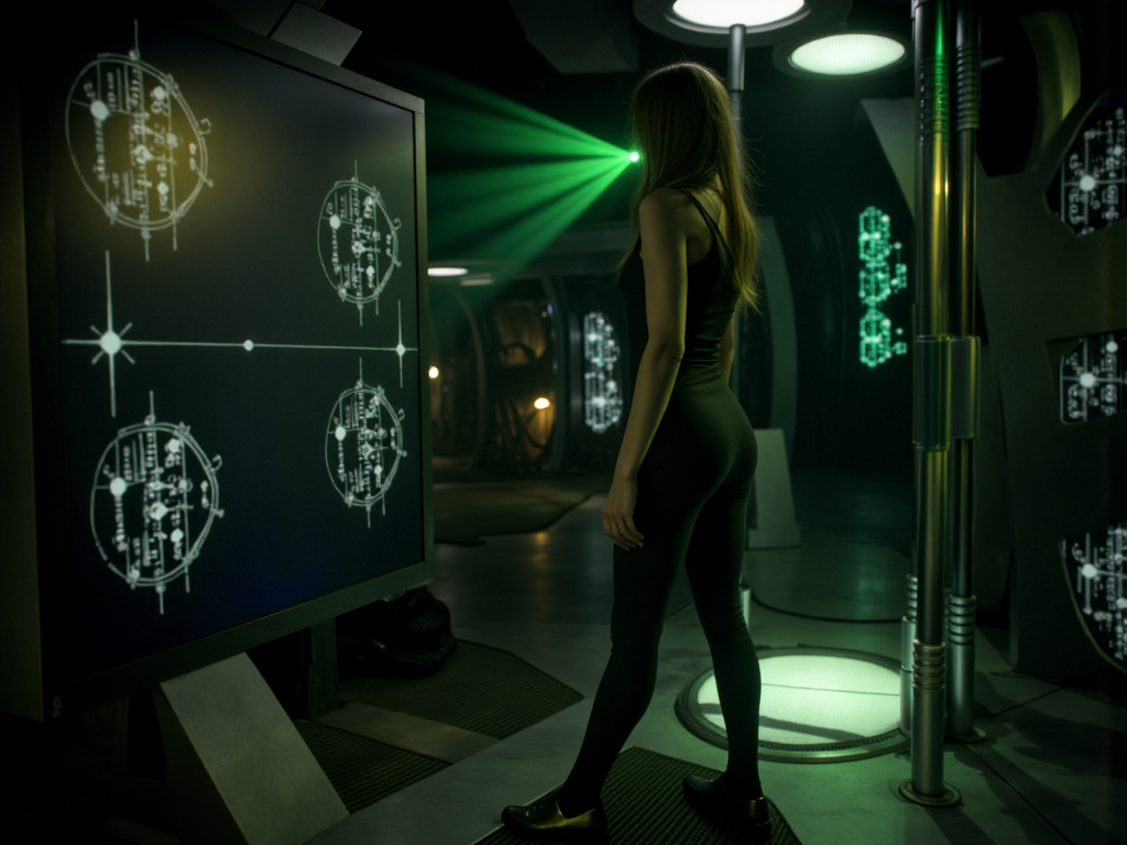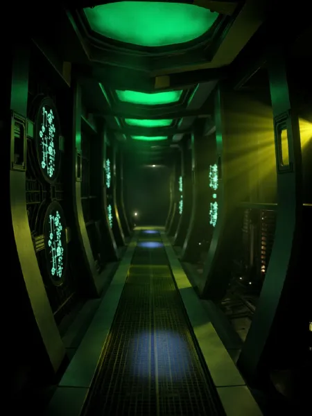 強い緑色のハイライトと深い影を持つシネマティックな照明、