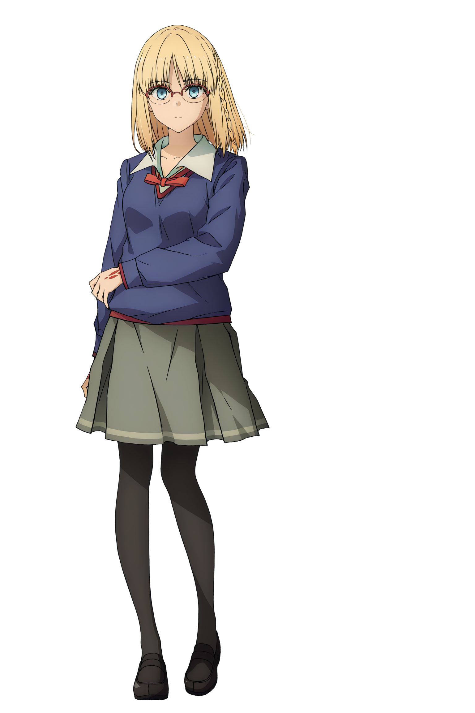 braid,blonde hair,blue eyes,glasses,