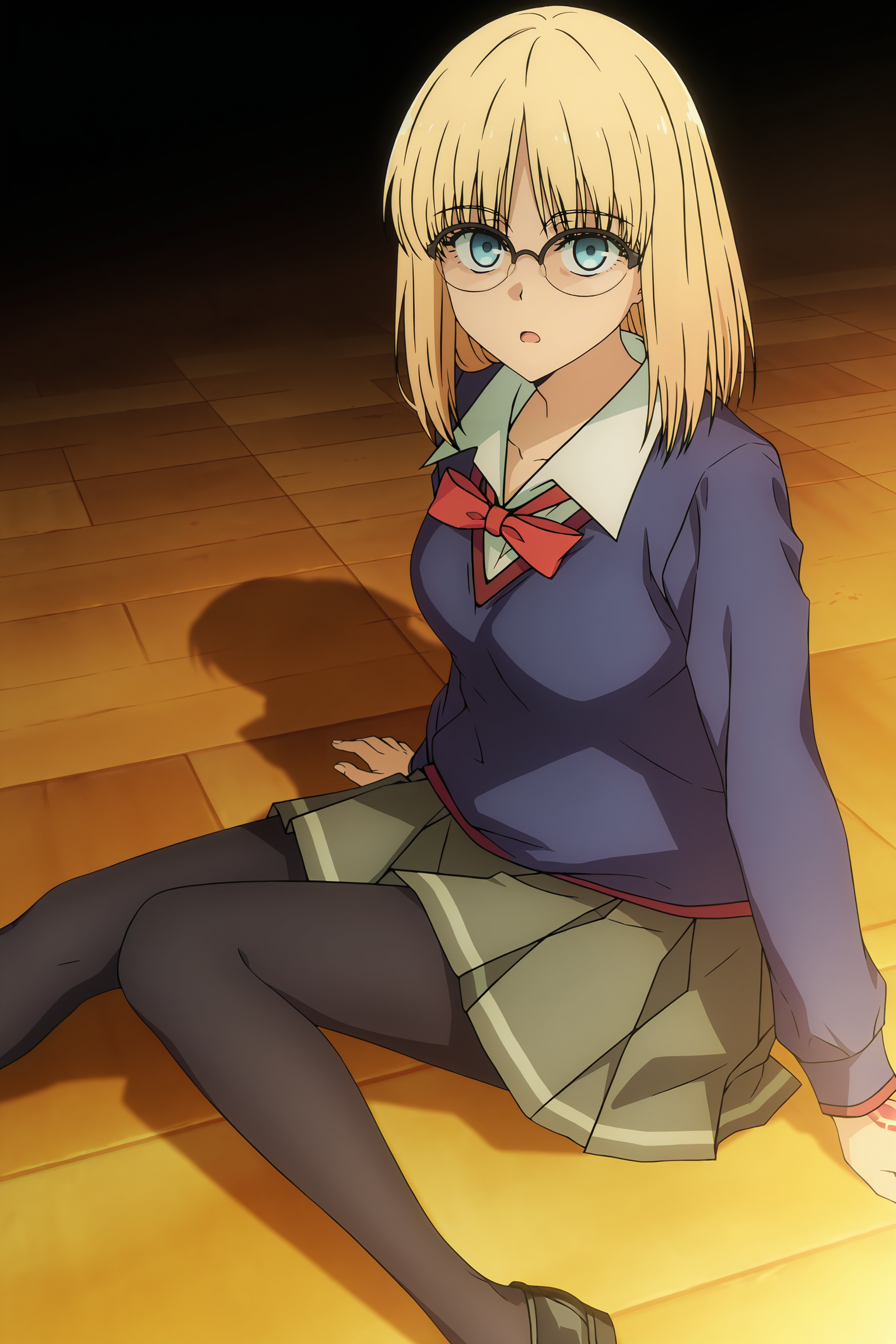 sweater,black pantyhose,school uniform,