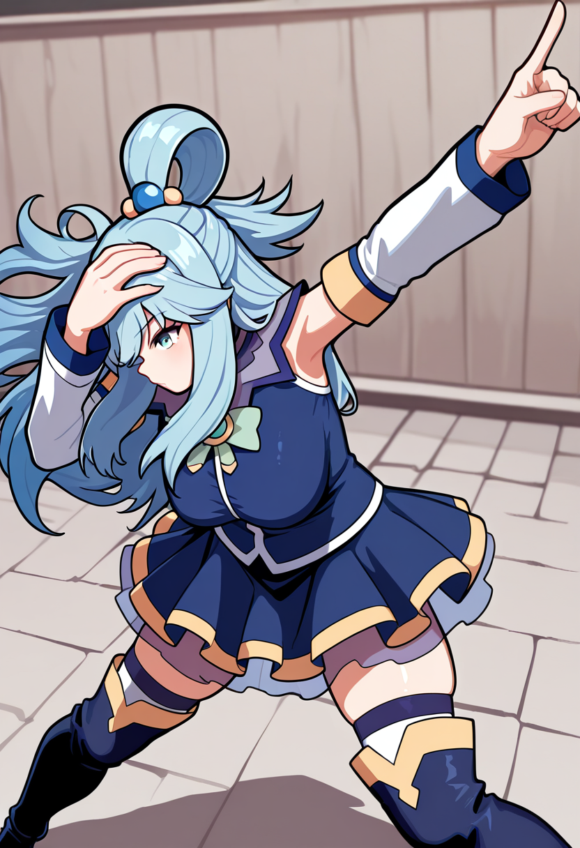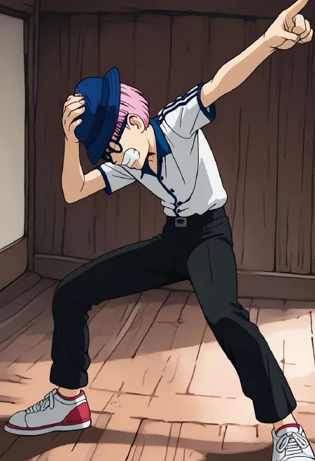 원피스의 잔고가 취하는 자세를 모방하기 위한 LoRa. 그는 한 손으로 모자를 머리 위에 올린 채 전진 자세를 취하고, 시선을 아래로 향하며 다른 손으로는 대각선 뒤로 위를 가리키고 있다. 이 자세는 애니메이션 12화에서 시럽 마을을 침공하기 전 블랙 캣 해적단에게 연설하는 도중 잔고가 취한 자세이다. 해당 에피소드의 한 프레임을 학습 데이터로 사용했다. 이는 내가 처음 시도하는 B-LoRa 학습이며, 몇 가지 다른 설정을 시도한 결과 꽤 잘 작동하는 것 같다. 더 많은 실험이 필요하지만, 단일 이미지 자세 LoRa 학습에는 적어도 유망해 보인다.