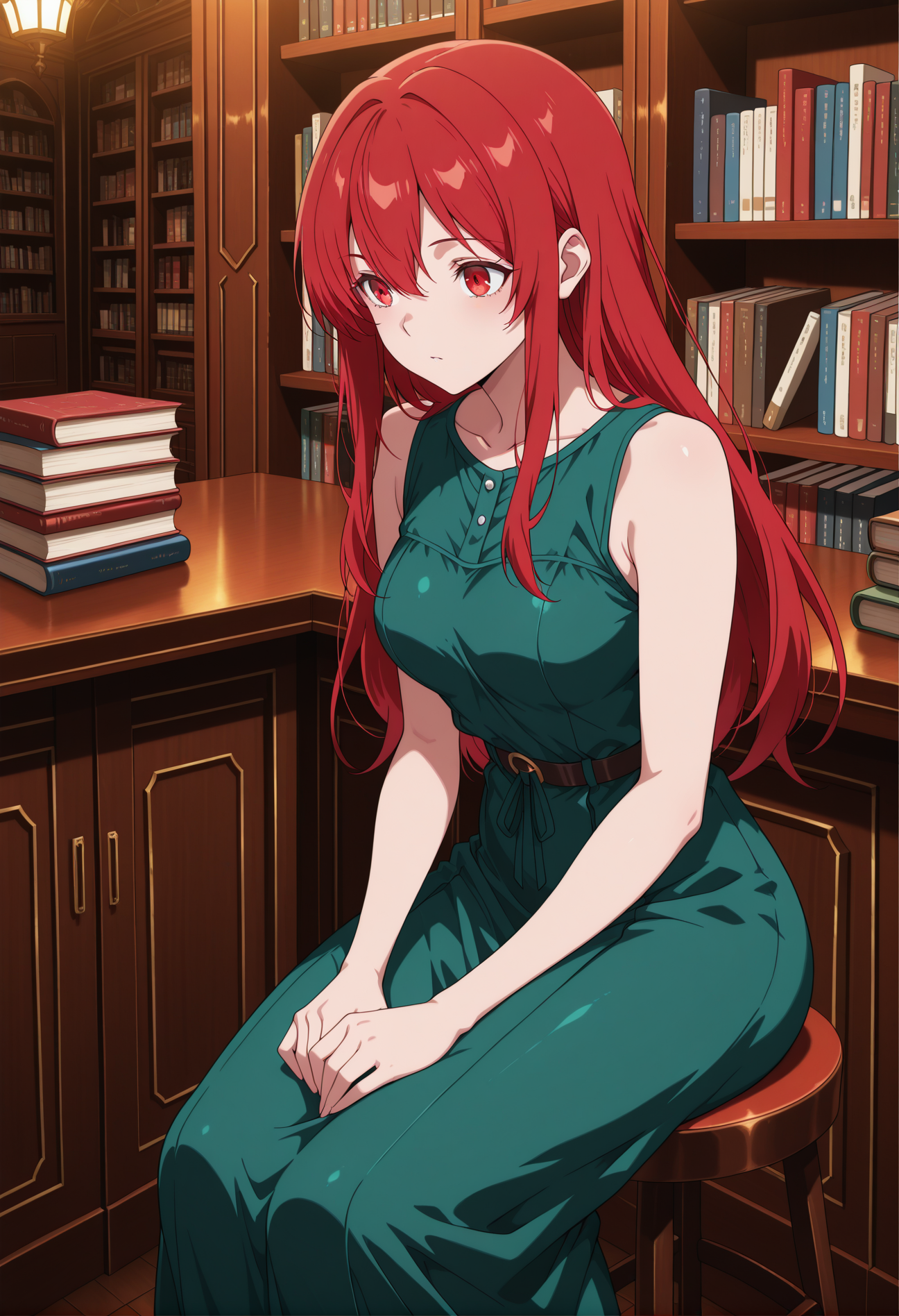 • 트리거+캐릭터 태그: sysdeep_char28, 1girl, solo, long hair, red eyes, red hair