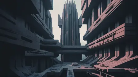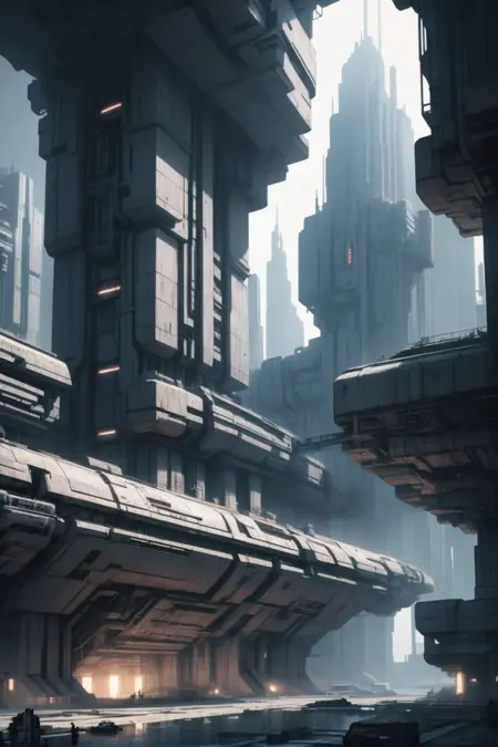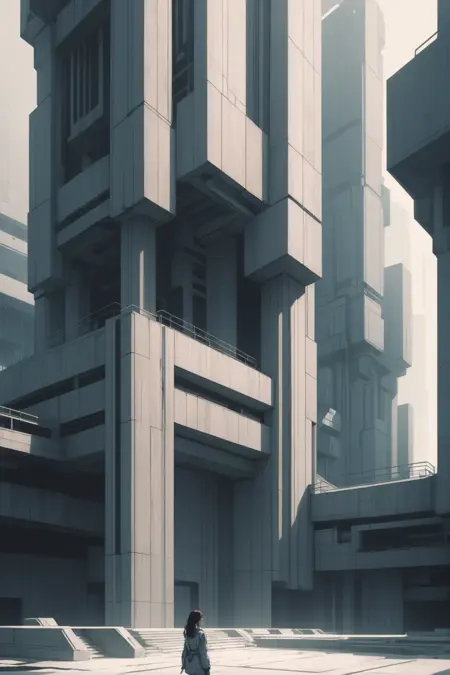 어두운 과학소설/사이버펑크 스타일로, 건축에 특히 적합하지만 캐릭터에도 흥미롭다. 트리거 단어는 "technobrutalist". 강도 0.4 - 1.