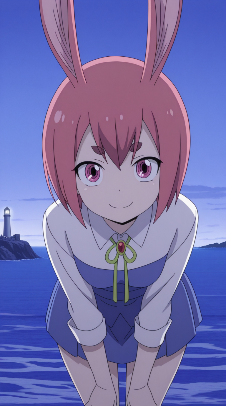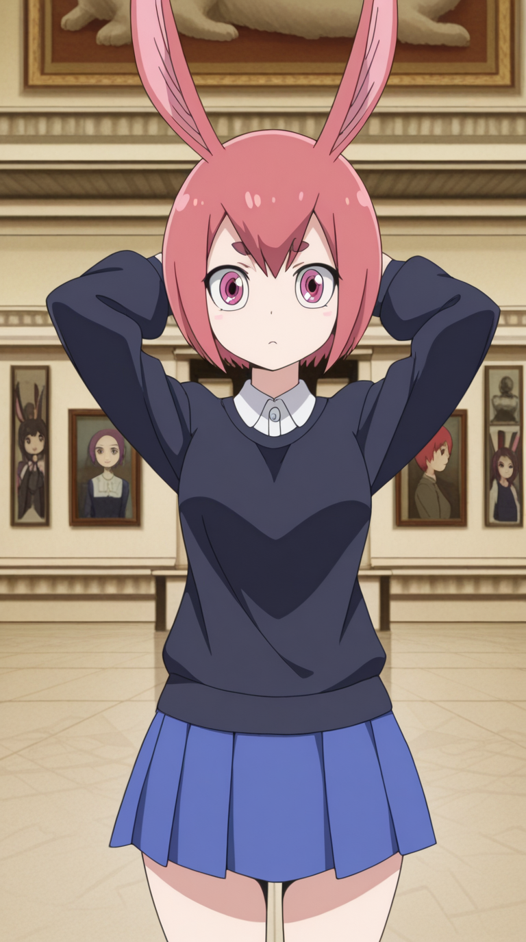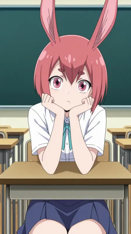 em pino, short hair, skirt, animal ears, pink hair, red hair, pink eyes, rabbit ears, anime screencap